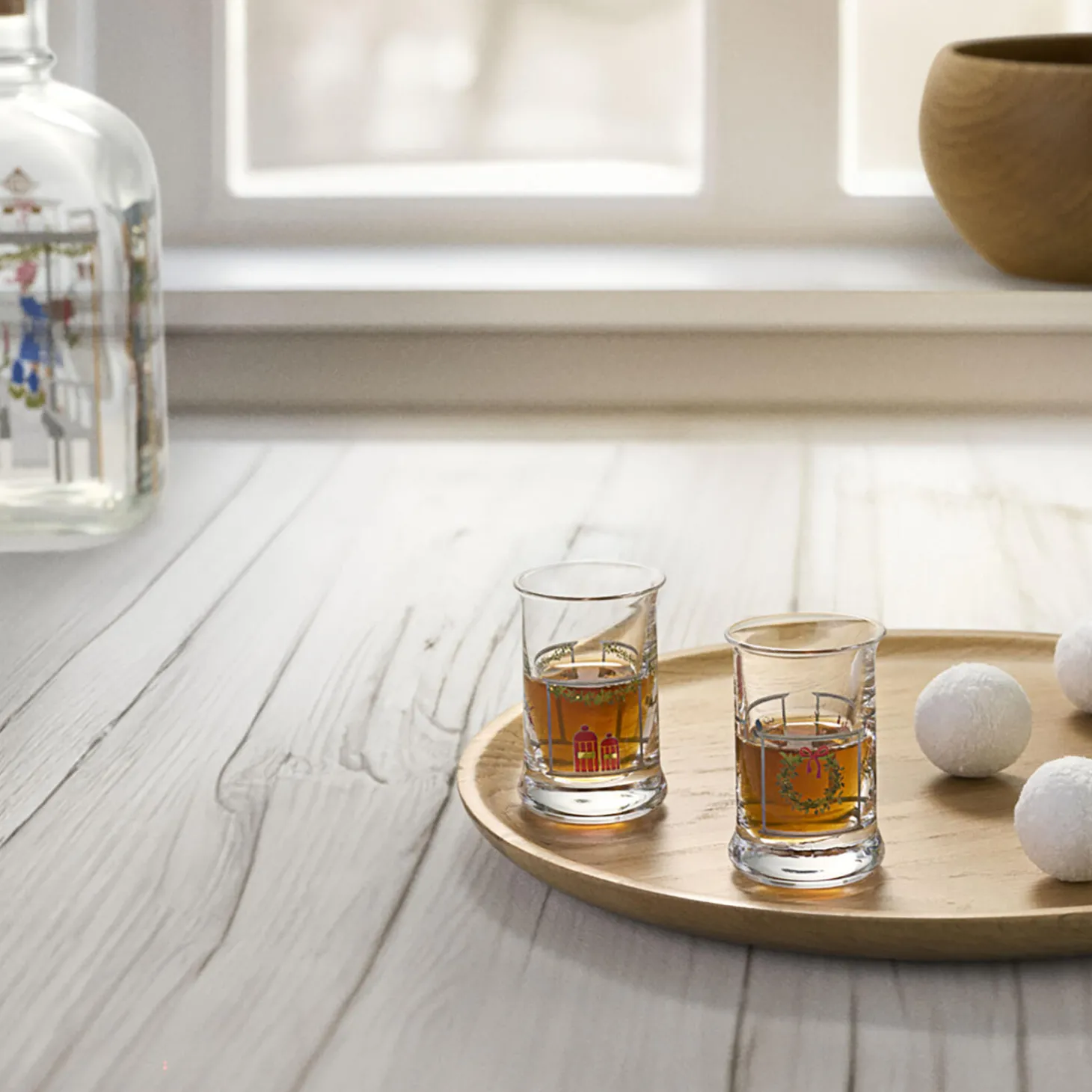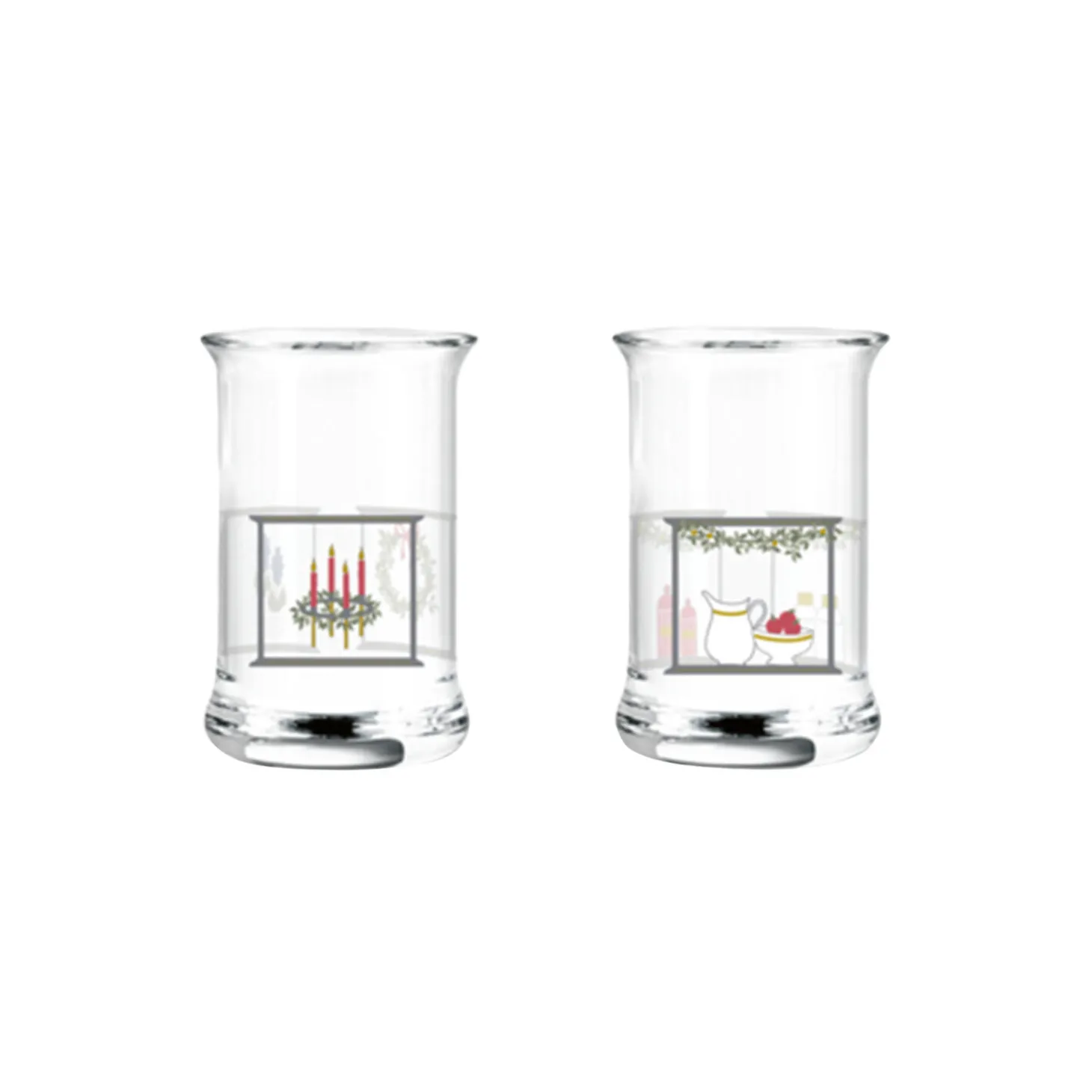 En følelse af jul som i gamle dage. Med kunstner Jette Frölichs nostalgiske og mesterlige papirklip inviterer Holmegaard Christmas dig med indenfor i julekøkkenet, der stemningsfuldt og levende rammer en nostalgisk og hyggelig julestemning. Oplev de ikoniske juledramglas i 2024-udgaven, der sælges i en pakke med to, og nyd kombinationen af Holmegaards refleksioner i glas og Jette Frölichs originale og kunstneriske univers, mens du hilser julen velkommen med familie og venner. Det 6 cm høje glas, der kan indeholde 3 cl, sidder godt i hånden og er meget stemningsfuldt. Glassene supplerer juleflasken til den årlige hjemmelavede snaps, og i 2024-motivuniverset på juledramglassene tager Jette Frölich os med ind i hjemmets hjerte: køkkenet. I december er det her, magien sker, når der skal bages julekager og laves julemad, som vi har glædet os til smagen og duften af lige siden sidste jul. Men køkkenet er ikke kun et sted, hvor alskens julelækkerier bliver frembragt. Det er også her, vi hygger os og er sammen. Det er her, vi pakker gaver ind, hvor adventskransen tændes, og hvor vi får lidt varmt at drikke, når frosten bider udenfor. Her kommer bagværket duftende ud af ovnen, mel og sukker står fremme, juleæblerne pynter i skåle, og hyggen fuldendes med hyacinter i glas og julekranse i vinduerne.