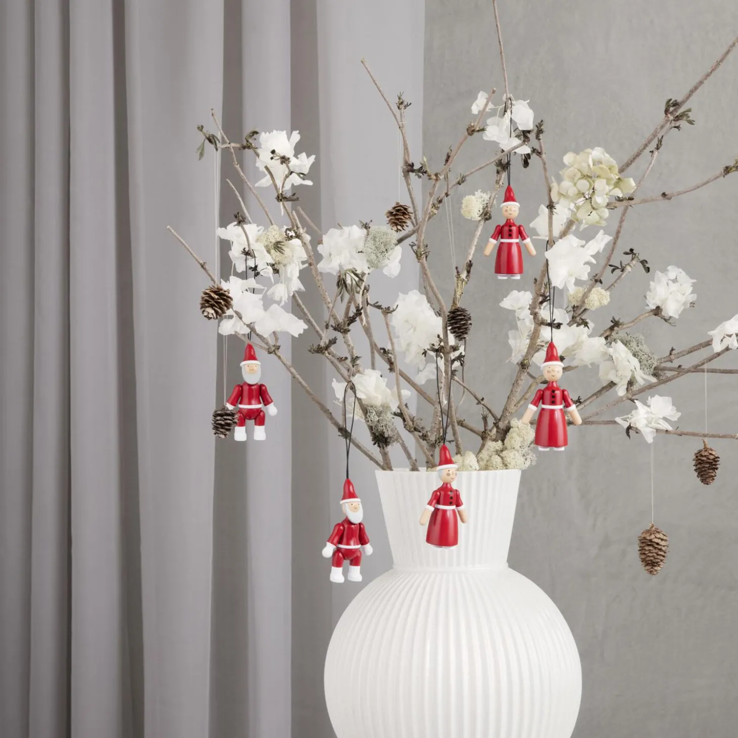 Det lille julepar, Julemand og Nissemor, fås nu også som ophæng, der kan bruges på juletræet, på dekorative, afskårne grene eller lige der, hvor du har lyst. De måler begge ca. 10 cm og er indbegrebet af klassisk, dansk jul, og julestemningen indfinder sig som ved et trylleslag, når der pyntes op med det søde og glade par. Figurerne er fremstillet i FSC®-certificeret bøgetræ, og den manuelle produktion med maling og tryk er udført med den store præcision og omhyggelighed, der er indbegrebet af Kay Bojesen. Begge er de klar til en uforglemmelig juleaften.
