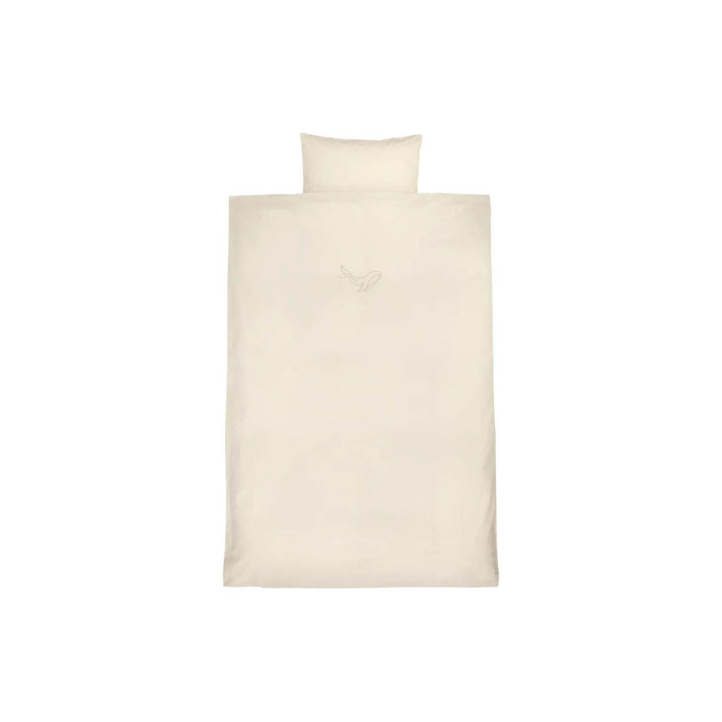 Dette økologiske juniorsengetøj fra We Are Bitte er ikke kun æstetisk men også virkelig blødt. På dynebetrækket er der en smuk broderet hval.Sengetøjet er designet i Danmark og lavet af det blødeste økologiske bomuld.