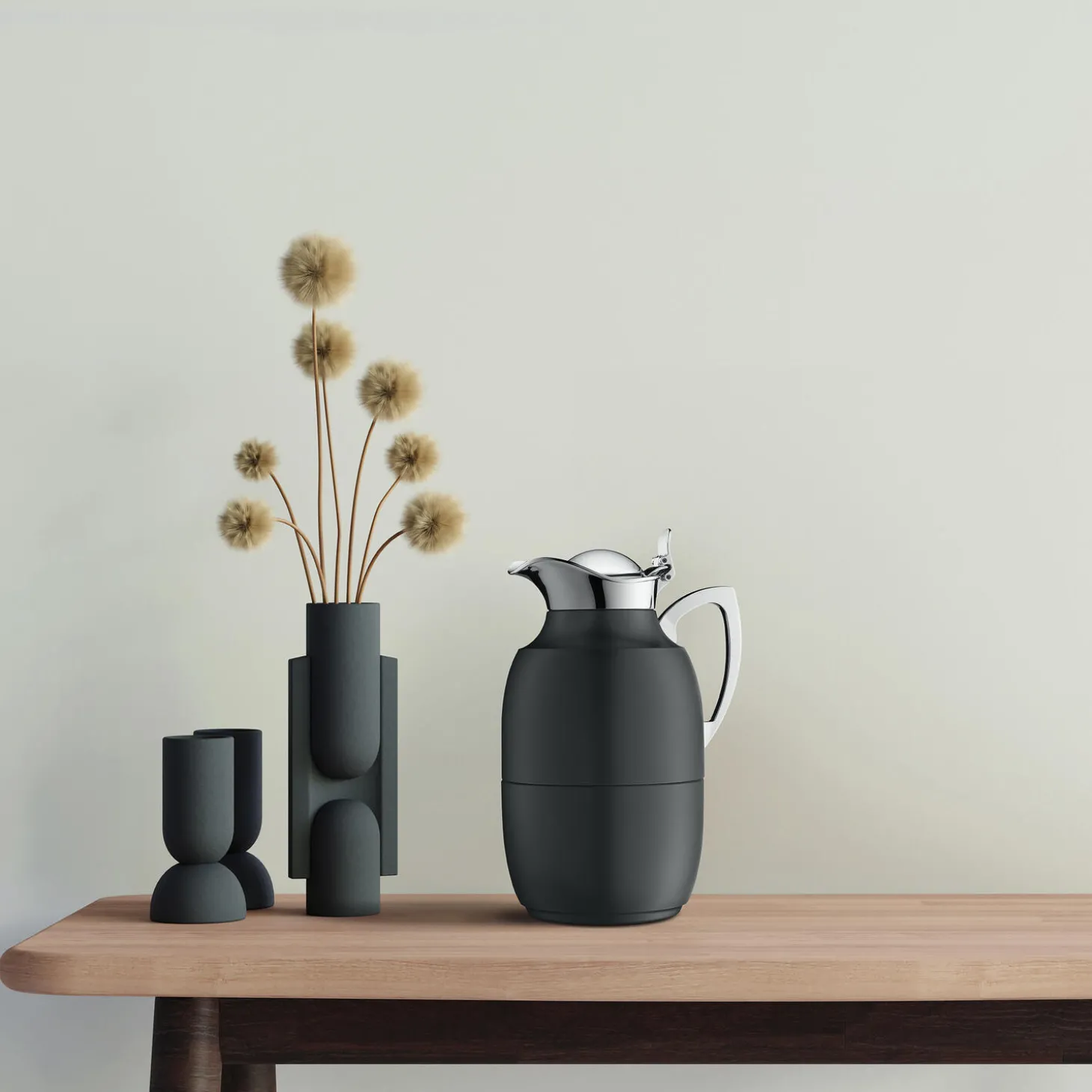 Alfi Juwel er en af verdens mest kendte termokander, og det oprindelige stilrene design kan dateres helt tilbage til 1918. Termokande i poleret stål i høj kvalitet. Dobbeltvægget AlfiDur-indsats i isolerende og hærdet vakuum-glas. Holder varmt i 12 timer, holder koldt i 24 timer. Unikt og praktisk hældesystem. Kan betjenes med én hånd. Ergonomisk, forkromet metalhåndtag. Fremstillet i Tyskland.