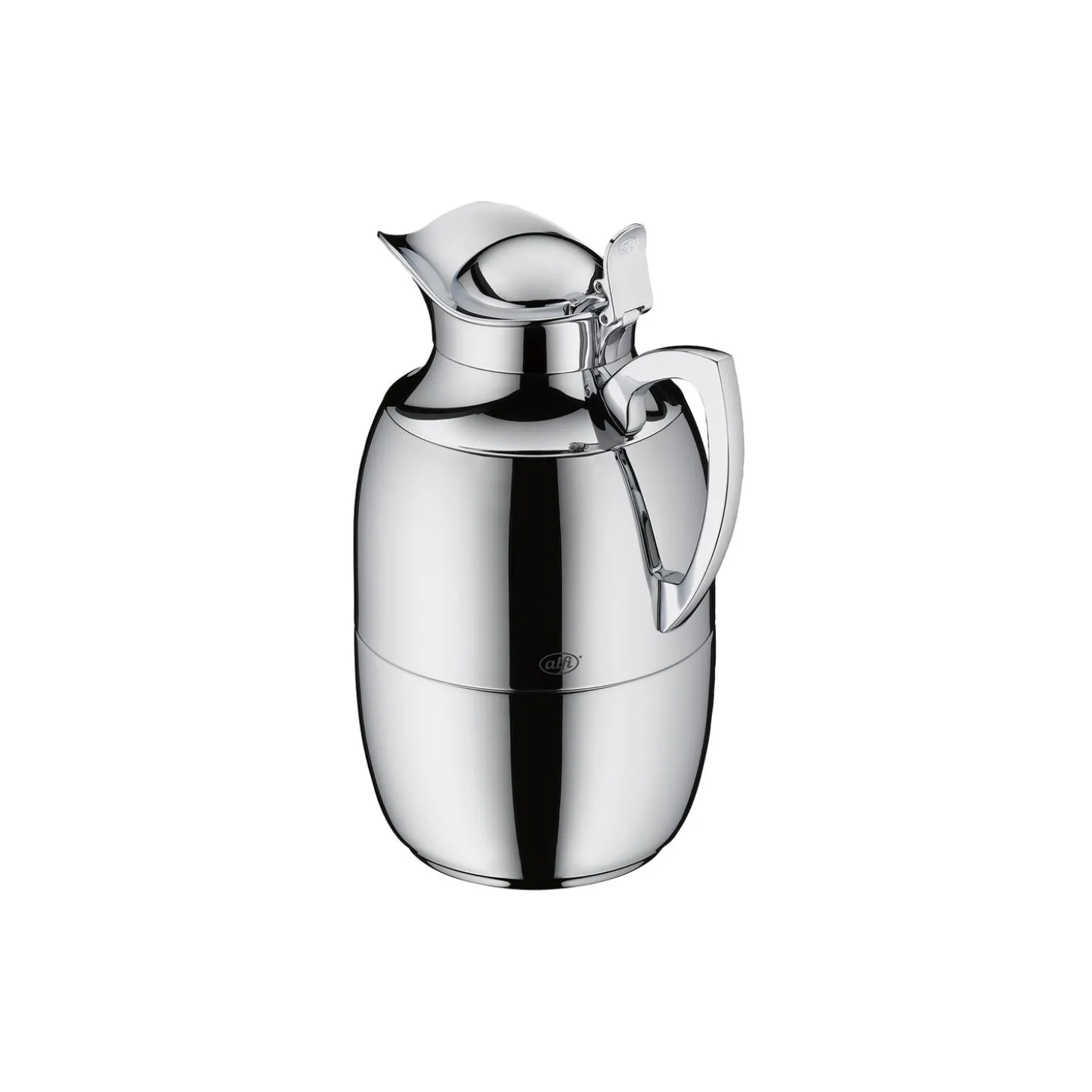 Alfi Juwel er en af verdens mest kendte termokander, og det oprindelige stilrene design kan dateres helt tilbage til 1918. Termokande i poleret stål i høj kvalitet. Dobbeltvægget AlfiDur-indsats i isolerende og hærdet vakuum-glas. Holder varmt i 12 timer, holder koldt i 24 timer. Unikt og praktisk hældesystem. Kan betjenes med én hånd. Ergonomisk, forkromet metalhåndtag. Fremstillet i Tyskland.