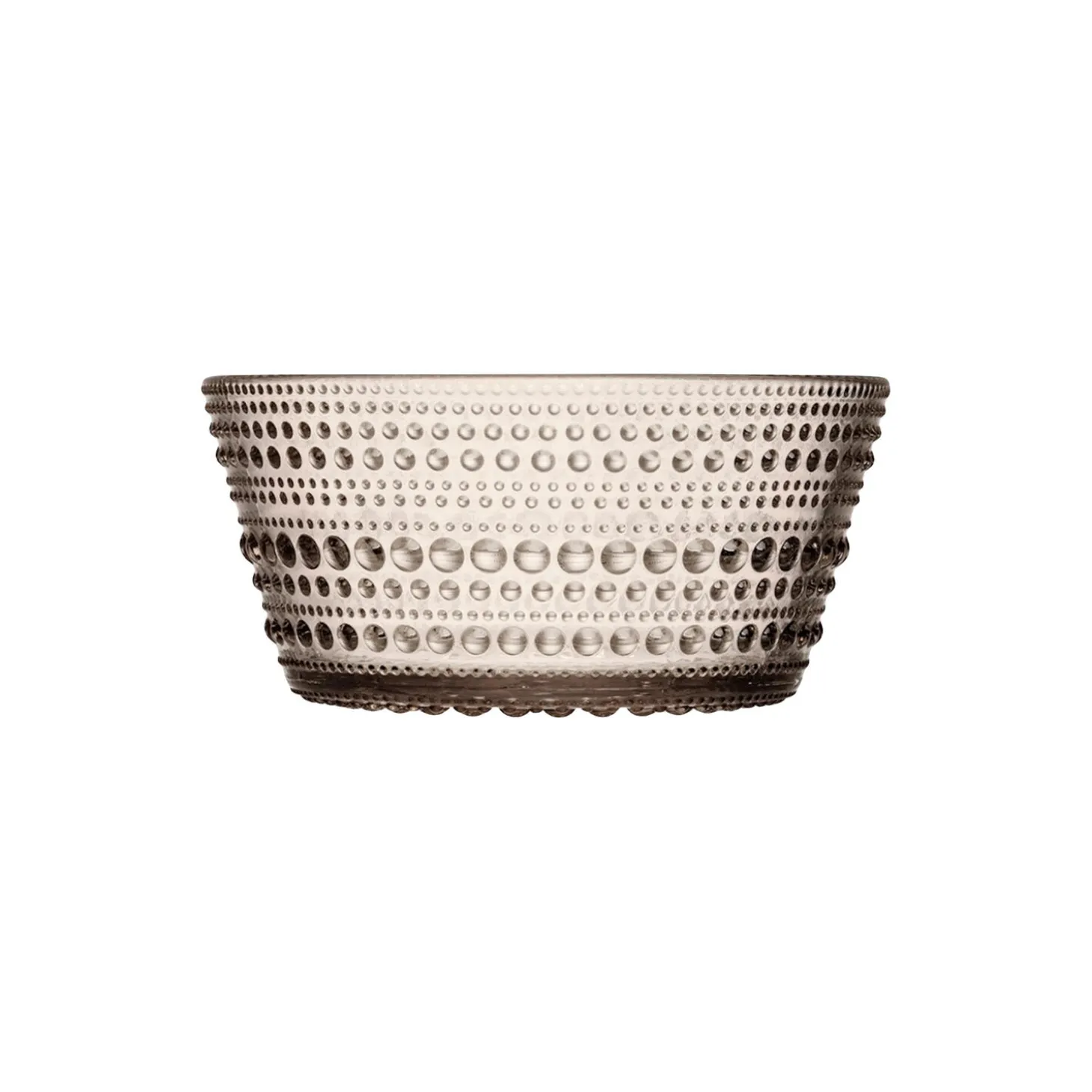 Finnish design pioneer Oiva Toikka was searching for a way to hide joint marks in glass when he invented the groundbreaking Kastehelmi design. Inspired by nature, Kastehelmi (Finnish for “dewdrop”) features rings of raised glass droplets that resemble strings of dewdrops glistening under the morning sun. Kastehelmi plays with light, bringing out the true reflective beauty of the glass. Iittala’s beloved Kastehelmi collection offers a wide range of versatile pieces that are both functional and decorative. The delicate yet durable Kastehelmi bowl is perfect for a hearty breakfast, snacks, sides and displaying candy. New linen colour adds fresh elegance to any table setting. Collect a set. A lovely gift.