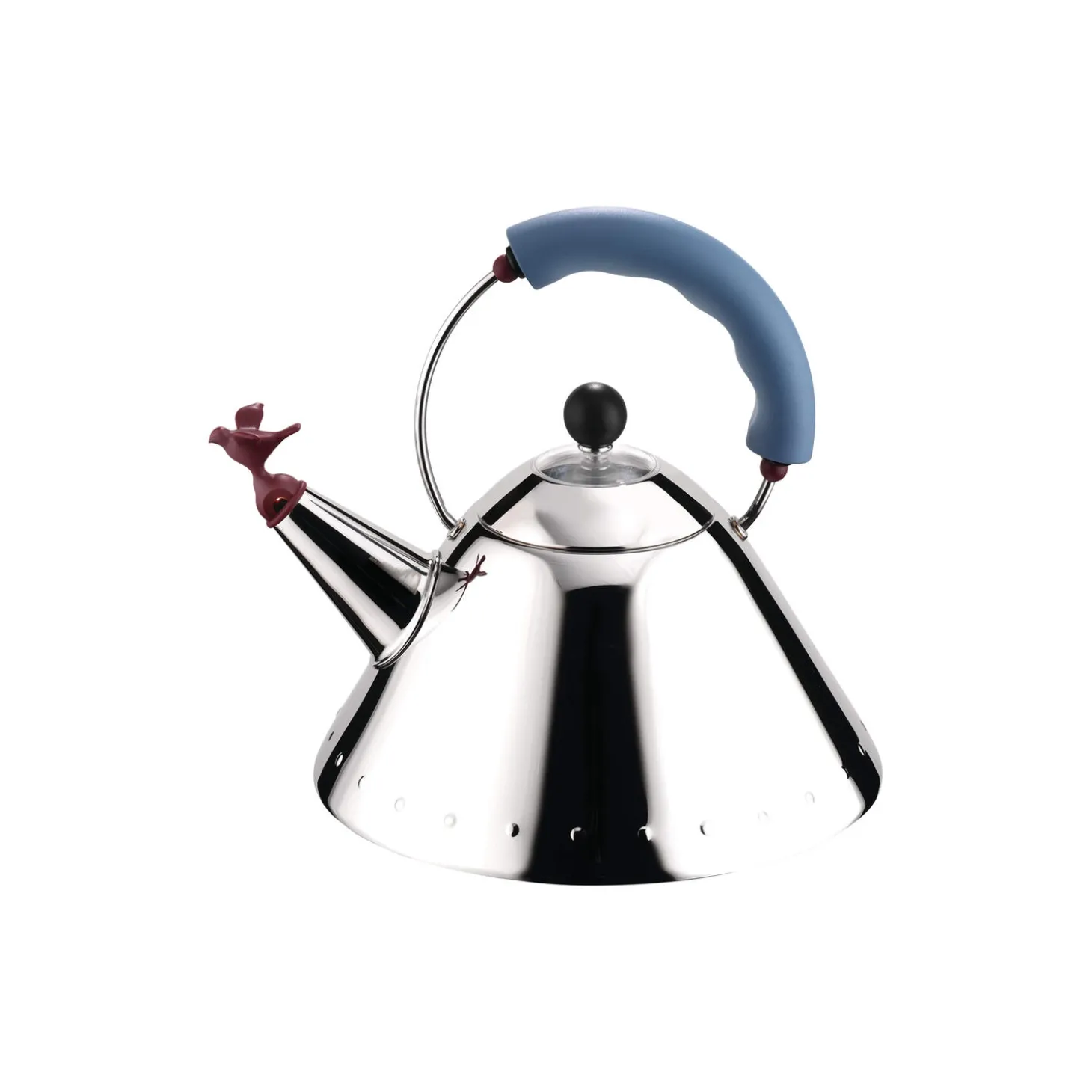 Kedel i blankpoleret rustfrit stål og nylon fra Alessi. Farve: stål/blå. Mål: H: 22,5 x Ø 22 cm. Indeholder: 2 L. Design: Michael Graves.