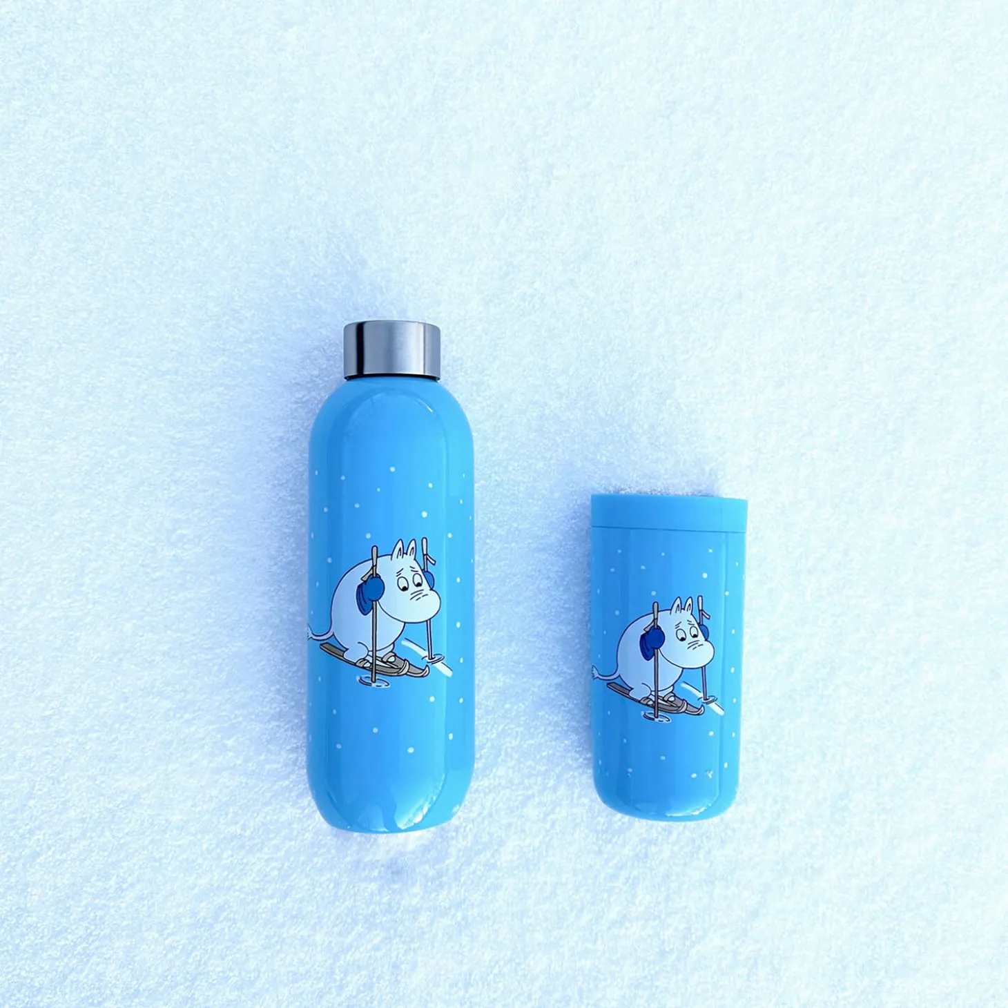 Moomin Skiing Collection er inspireret af tegneserien Moomin’s Winter Hideout fra 1955, hvor Moomin-familien springer deres årlige dvale over. De møder idrætsinstruktør Frisch fra Sports Center for Moominvalley Winter Games, som underviser muminerne i alle former for vintersport, inklusive skiløb.Keep Cool er en smuk og robust termodrikkeflaske på 0,6 l., designet af den italienske designduo DebiasiSandri. Keep Cool termodrikkeflasken er fremstillet i rustfrit stål med lyserød pulverlakering. Flasken holder din drik kold i 24 timer – eller varm i 12 timer.