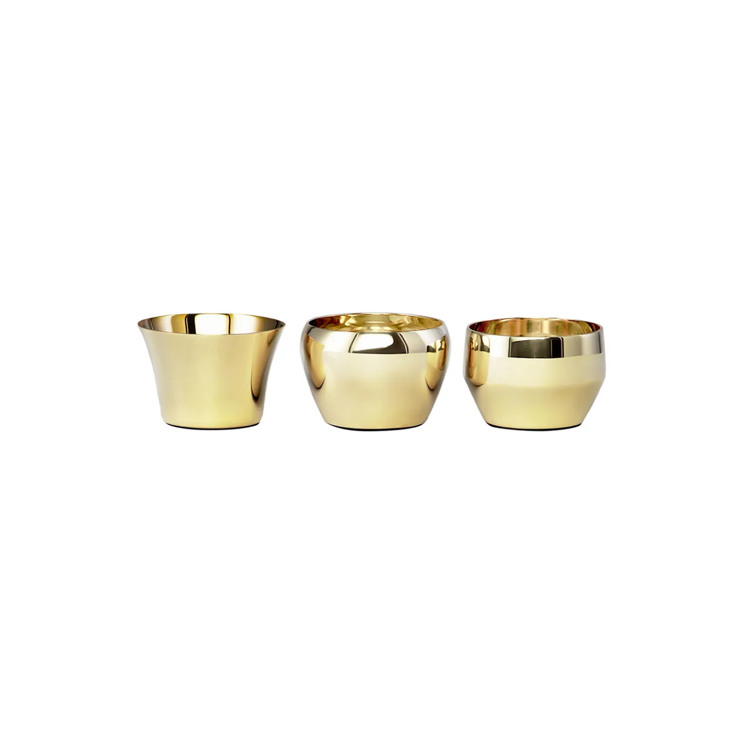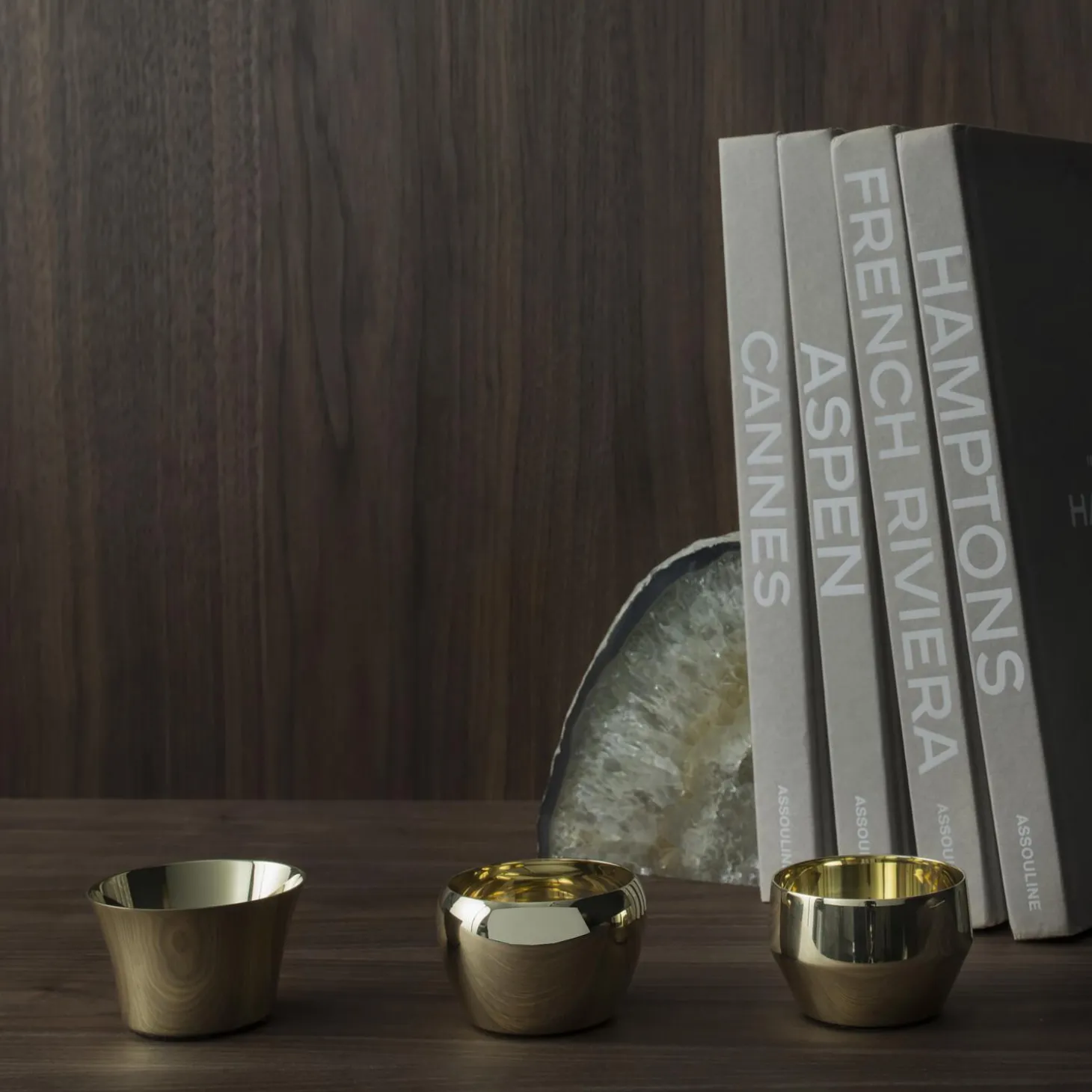 Kin is a tea light candle holder with five different models designed by the internationally successful design studio Claesson Koivisto Rune. This is the original series made of polished brass on both the inside and the outside. Designed 2010.