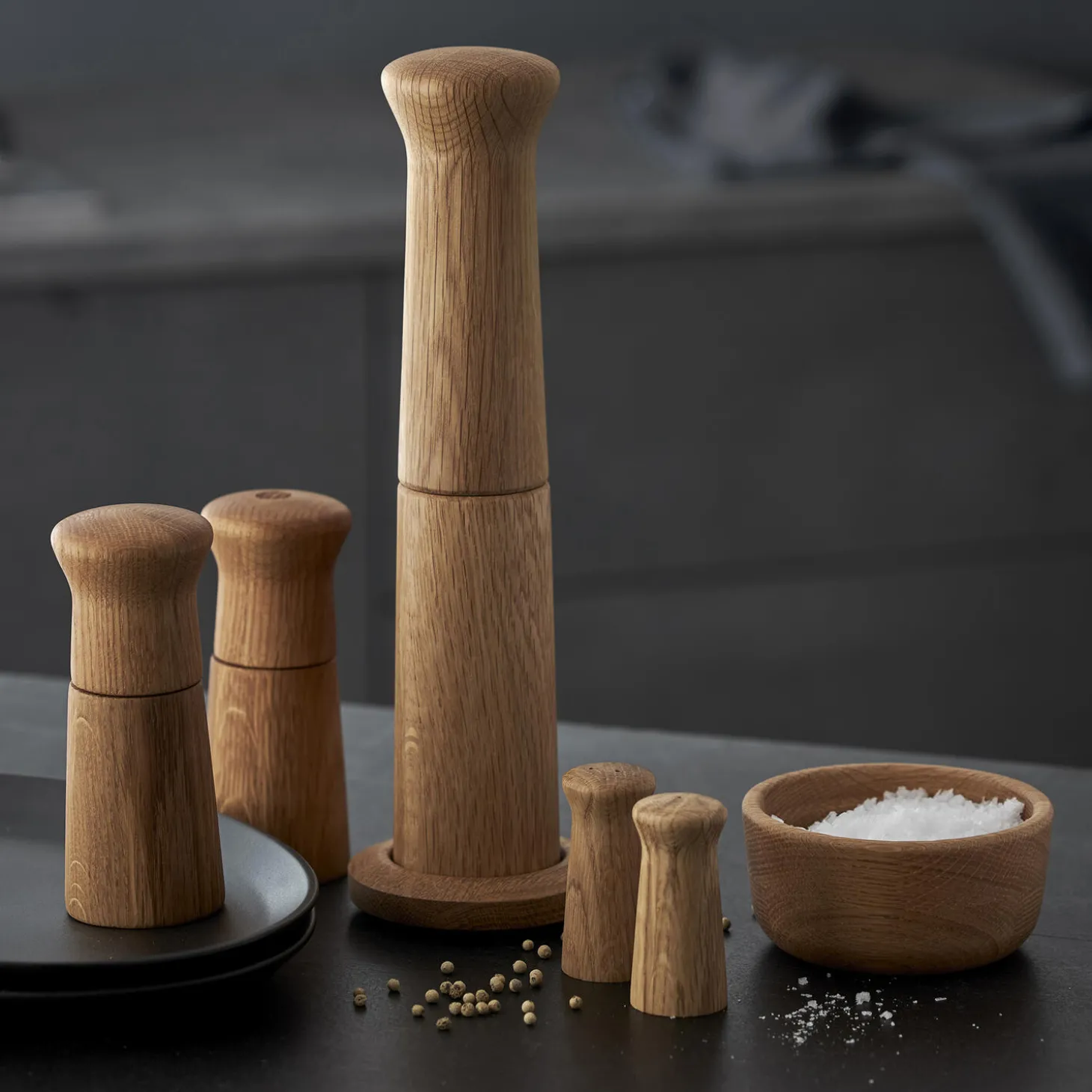 Peberkværn af egetræ. Den keramiske CrushGrind® kværn er udviklet til at kunne kværne såvel peber som alle andre typer tørrede krydderurter og krydderier, så du kan putte netop din favoritkrydderiblanding i kværnen. Varen er produceret i FSC®-certificeret egetræ (FSC-C166612).