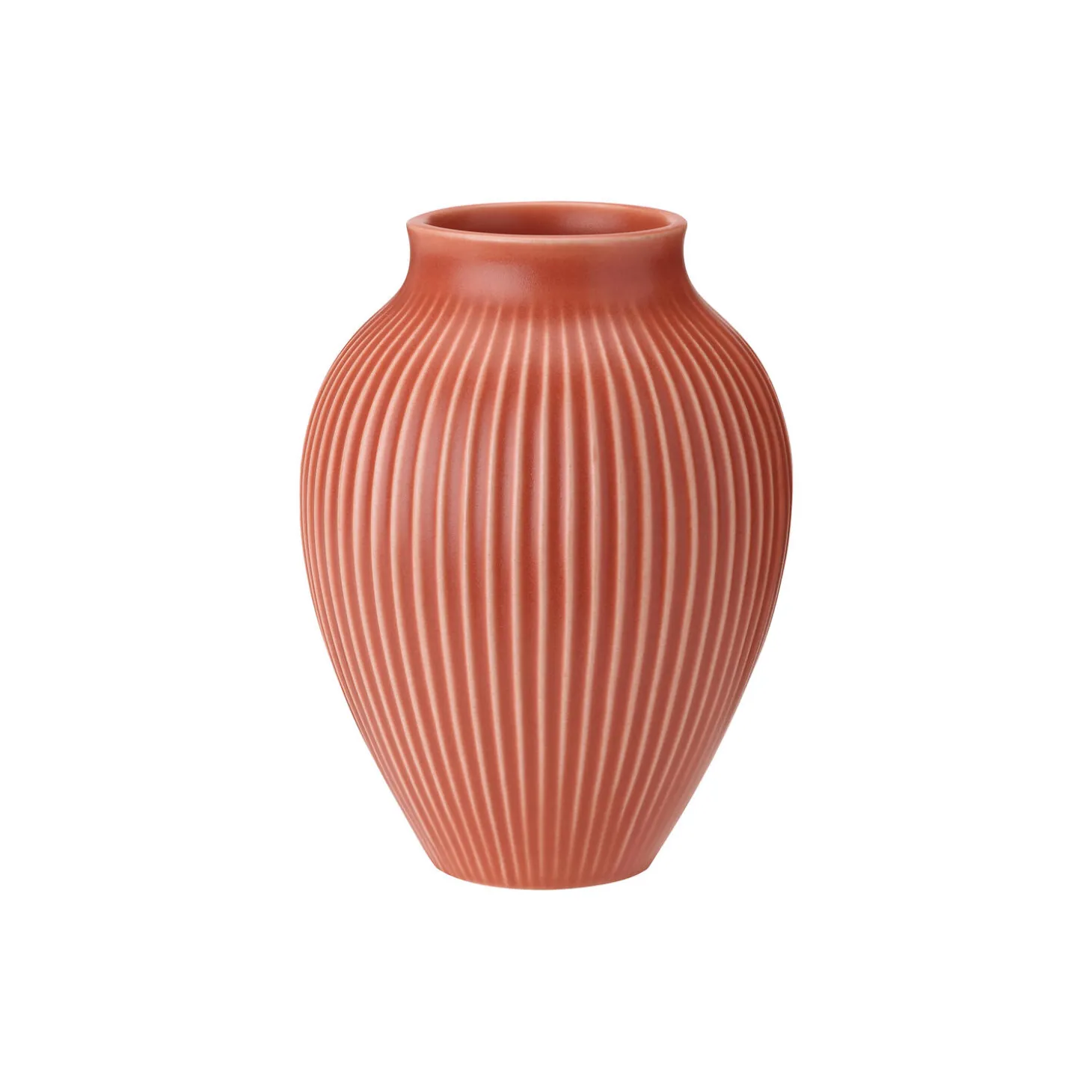 Gennem tiden har Knabstrup Keramik produceret et utal af smukke vaser i forskellige formgivninger. Denne vase er vi særligt stolte af. Den blev oprindeligt formgivet i slutningen af 1940’erne og med sin elegante og klassiske form er vasen et tidløst stykke keramik, der holder stilen langt ind i fremtiden. Knabstrup vasen er designet, så den ikke bare præsenterer sig selv, men også sæsonens blomsterbuketter og grene på smukkeste vis. Nu lanceres vasen med riller, hvilket giver den klassiske form helt nyt liv og giver et moderne og interessant udtryk, som passer perfekt ind i den nordiske boligindretning.