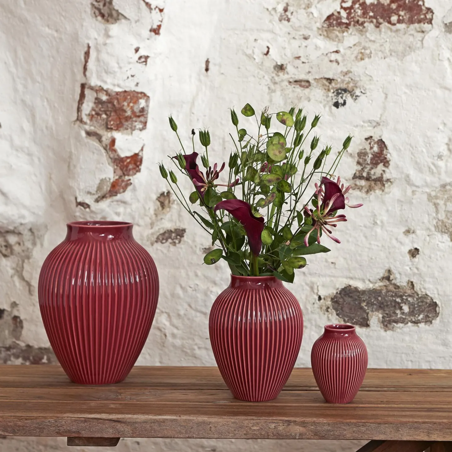 Gennem tiden har Knabstrup Keramik produceret et utal af smukke vaser i forskellige formgivninger. Denne vase er Knabstrup Keramik særligt stolte af. Den blev oprindeligt formgivet i slutningen af 1940’erne og med sin elegante og klassiske form er vasen et tidløst stykke keramik, der holder stilen langt ind i fremtiden. Knabstrup vasen er designet, så den ikke bare præsenterer sig selv, men også sæsonens blomsterbuketter og grene på smukkeste vis.