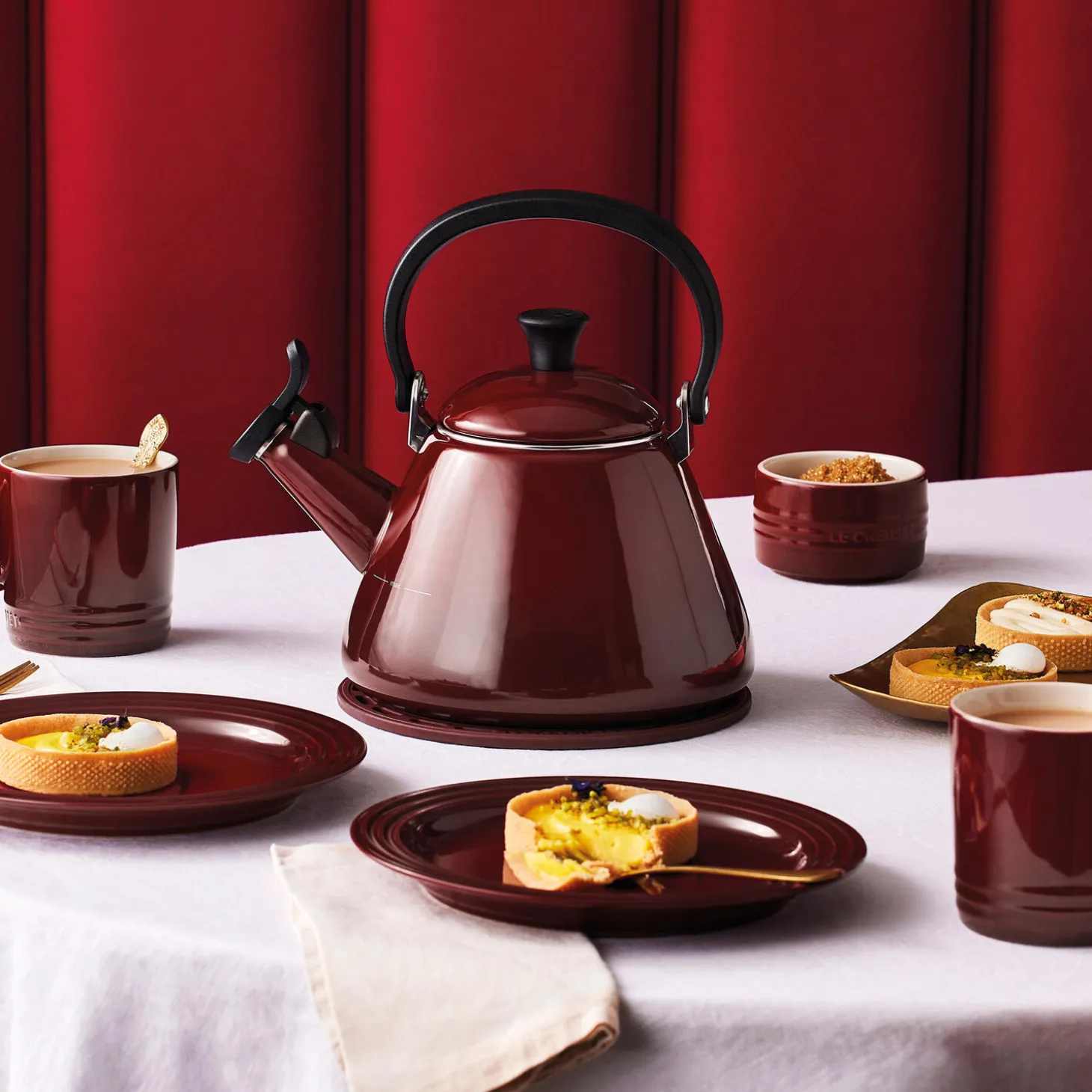 Der er intet, der slår duften af friskbrygget te eller kaffe, og en så vigtig daglig rutine fortjener en elegant kedel. Uanset om du foretrækker et traditionelt eller moderne design, tilfører Le Creusets emaljerede stålkedler både farve og stil til dit køkken. Hver kedel er fremstillet af stål i høj kvalitet og har en slidstærk, farverig emaljeoverflade, der passer perfekt til dit Le Creuset køkkengrej. Alle Le Creusets kedler har en bred bund for effektiv opvarmning og en fløjte, der fortæller dig, når vandet koger. Håndtaget er låst i oprejst position for stabil og sikker hældning. Kedlerne er kompatible med alle typer kogeplader, inklusive induktion og støbejernskomfur. Dækket af en 5 års garanti.