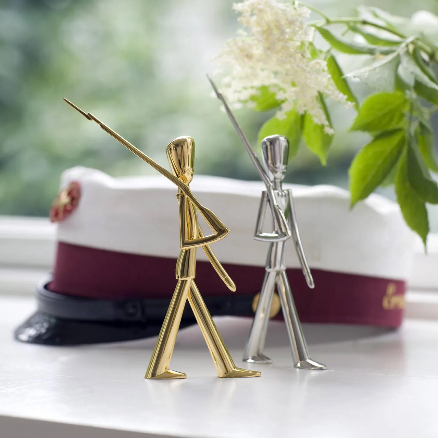 Mange år efter Kay Bojesens død tømte hans børnebørn loftet og fandt en lille papæske, som indeholdt et hav af løsdele og små modeller i kobber. Blandt disse løsdele lå en færdigsamlet Kongelig Garder i sølv. De små løsdele gjorde det tydeligt at se, hvordan Kay Bojesen havde smedet sig frem mod den perfekte vægt og højde. Det er den perfekte gave til elskere af Kay Bojesens legesyge og elegante design i alle aldersgrupper.