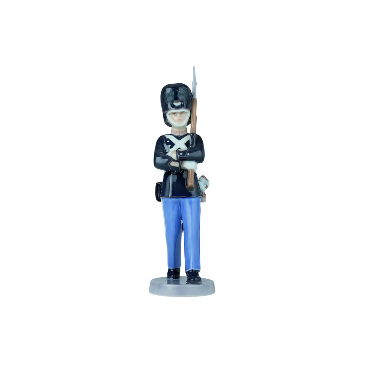 Kongelig Livgarde i porcelæn fra Royal Copenhagen. I samarbejde med De Danske Garderforeninger relancerer Royal Copenhagen den smukke Garder figur fra Bing & Grøndahl af kunstneren Svend Jespersen. Dronningens monogram kan ses på Garderens vagttaske.