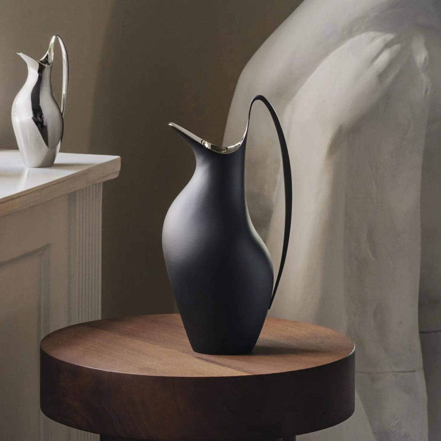 Koppel kanden i Midnight Black giver det ikoniske design et usædvanligt elegant udtryk. Kanden har en glat og mat overflade, mens hældetuden er i blankt rustfrit stål som en elegant detalje. Den danske skulptør Henning Koppel står bag det originale design fra 1950’erne, og masterpiece kanden er en af Georg Jensens tidløse designklassikere med sine unikke og skulpturelle linjer. Produktet tåler ikke opvaskemaskine.