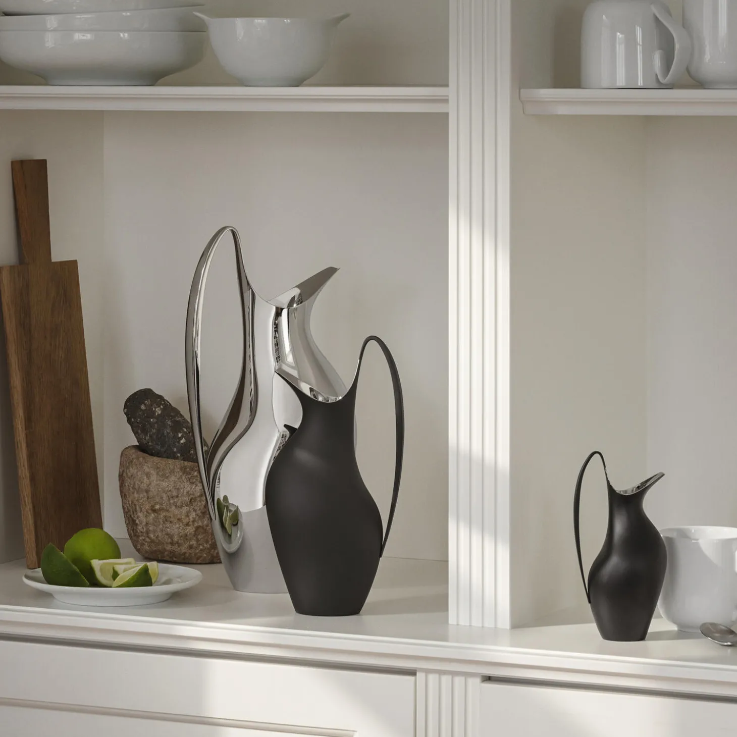Den lille variant af Koppel kanden får et elegant udtryk i denne sorte udgave af Henning Koppels ikoniske design. Kanden har en glat, mat finish og en hældetud i blankt rustfrit stål som en elegant detalje. Den blev designet første gang af skulptør Henning Koppel i 1950’erne, og med sit unikke og skulpturelle design er Koppel kanden blevet et af Georg Jensens tidløse ikoner. Kanden er ikke egnet til opvaskemaskine.