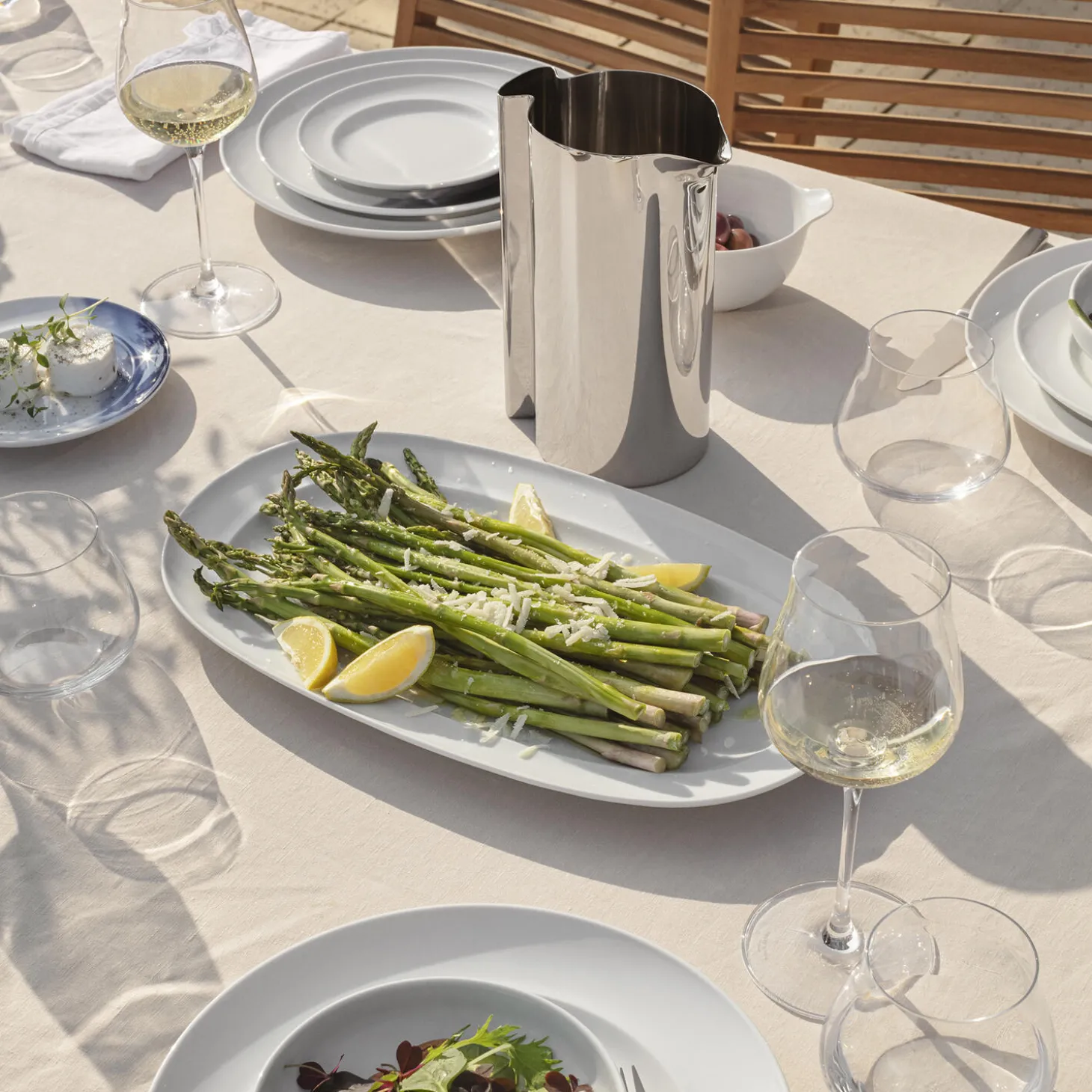 Dette tidløse, ovale serveringsfad i hvidt porcelæn blev første gang designet i 1960’erne af Henning Koppel, som arbejdede tæt sammen med Georg Jensen. Serveringsfadet løfter borddækningen med sit funktionelle og elegante design og er ideelt til servering af al slags mad.