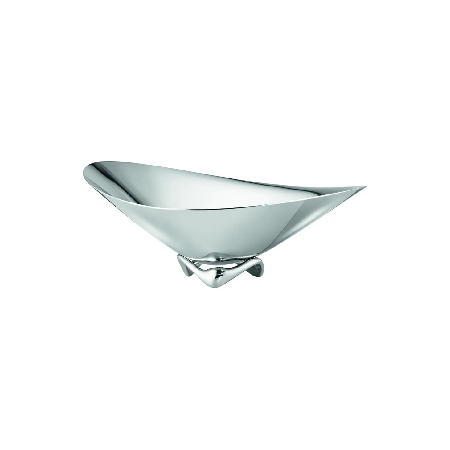 Wave skålen er inspireret af havets bølger, hvis flydende bevægelse tydeligt kan ses i skålens design. Wave skålen reflekterer lyset på smukkeste vis, og er derfor perfekt på et dækket bord. Georg Jensens desigteam har brugt originale Koppel skitser til at skabe wave skålene, der med sin blankpolerede overflade i rustfrit stål, nærmest ligner at den svæver over bordet.
