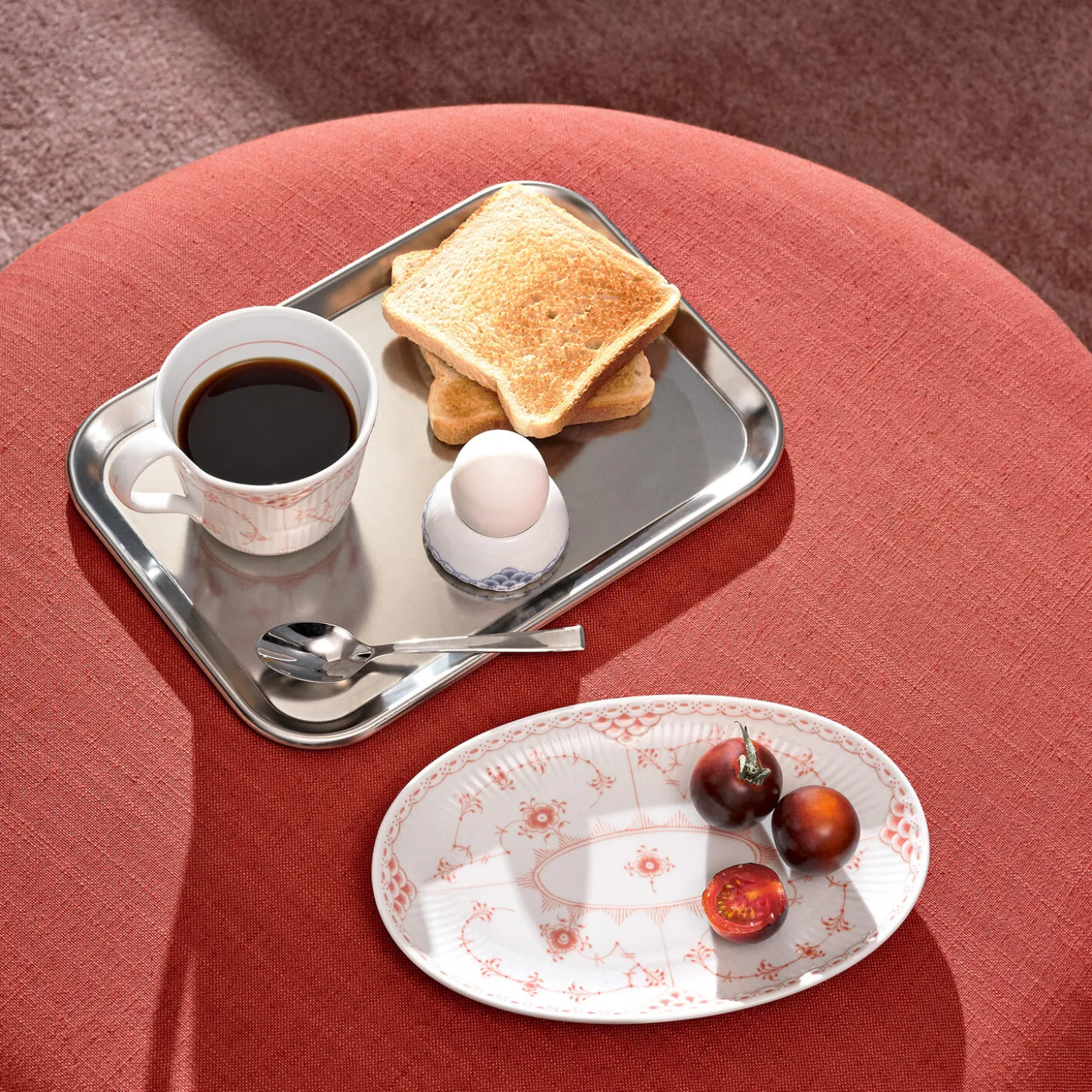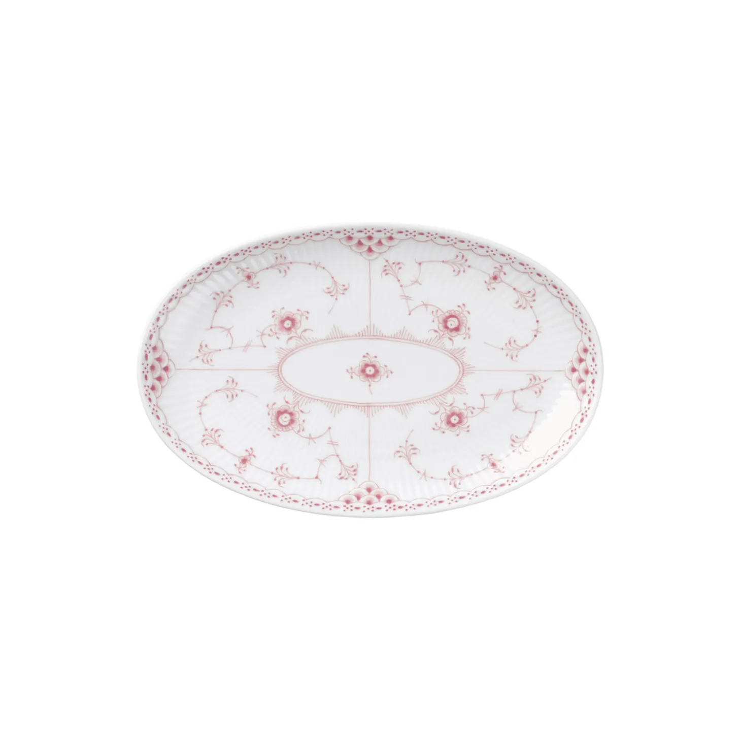 Lige så smukt som det er alsidigt, kan Koral Riflet Halvblonde asiet bruges til at servere alt fra friskbagte småkager, små tilbehør eller endda individuelle desserter. Asietten er tilpasset fra en musselmalet form og er perfekt egnet til Halvblonde kollektionen og dens smukt dekorerede blondekant.