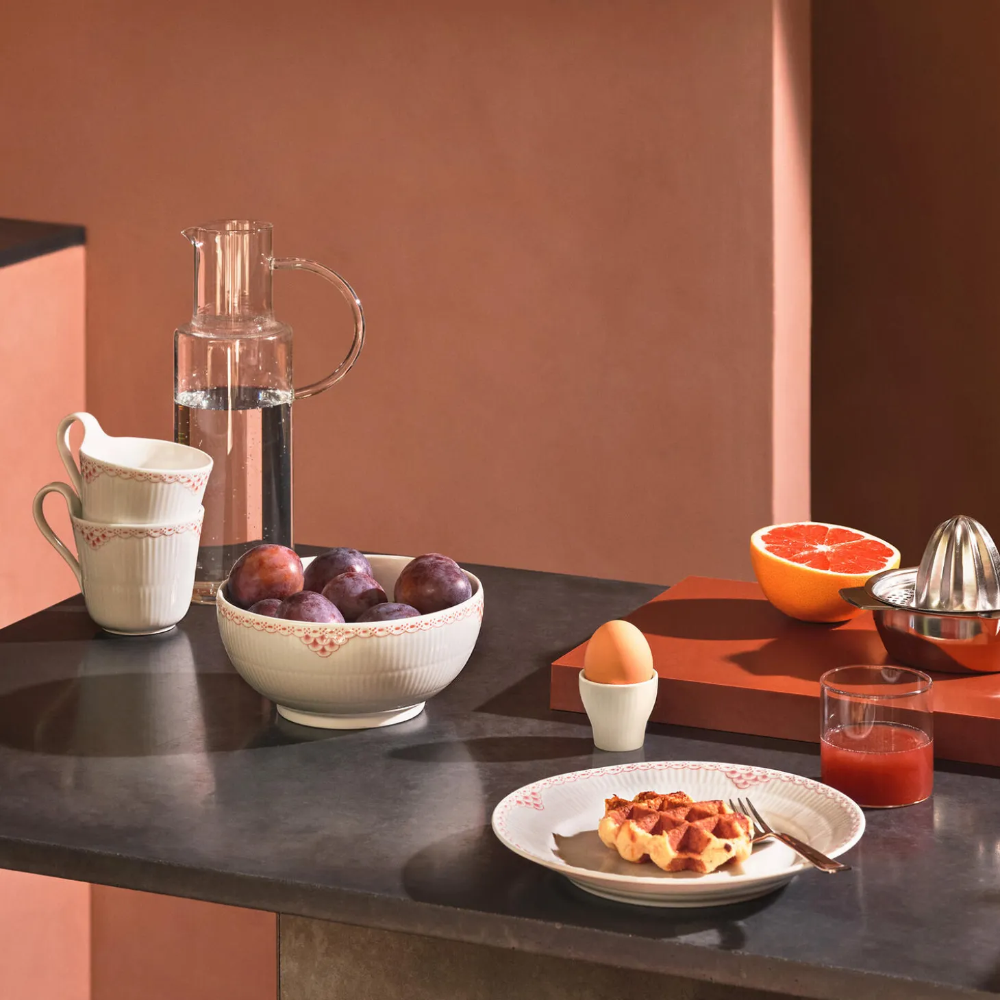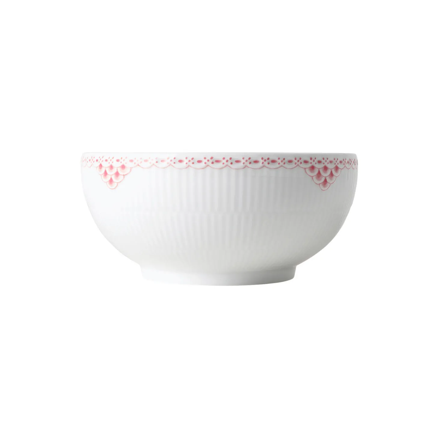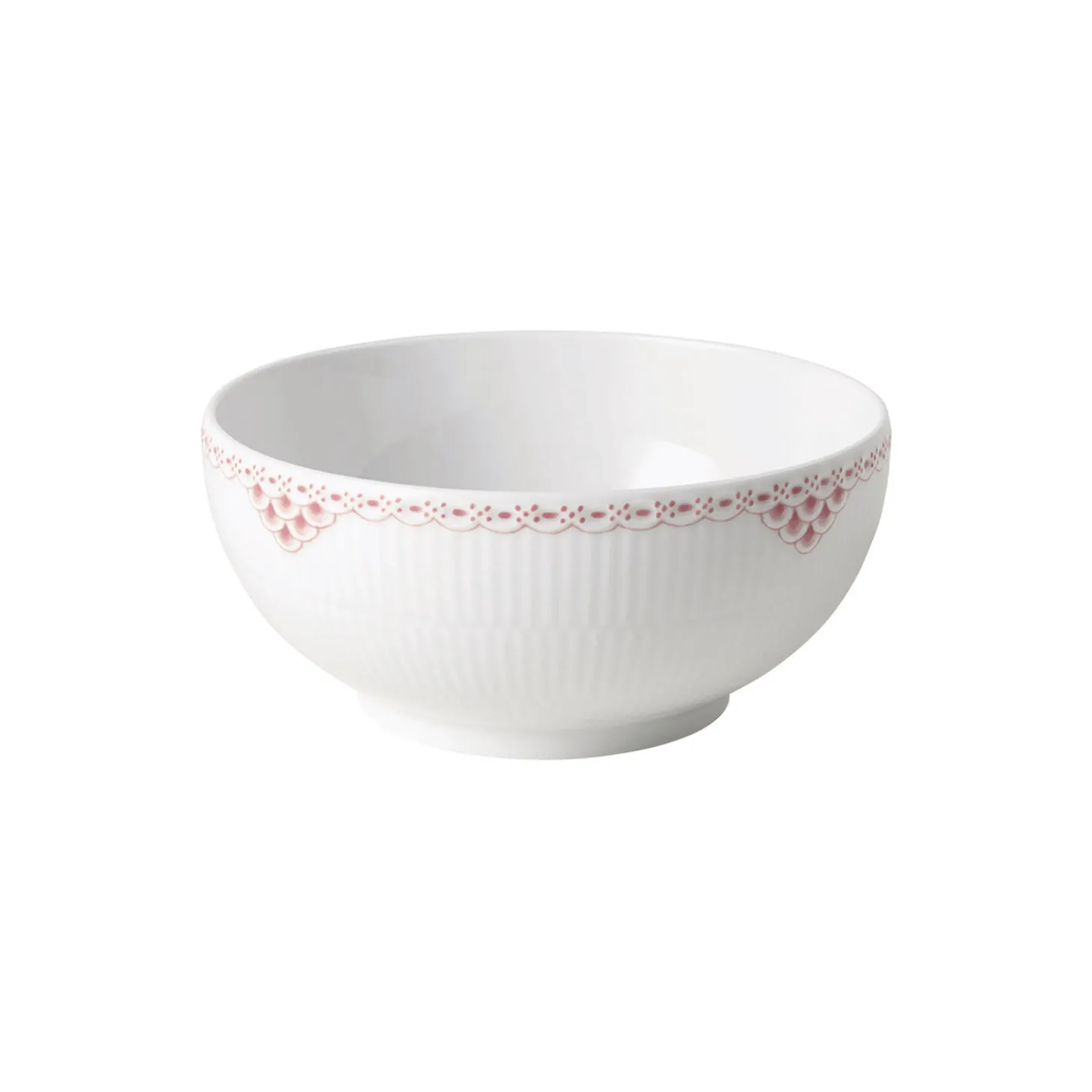 Fyld friske farverige frugter i din Koral Riflet Blonde skål og stil den på dit spisebord eller køkkenbord. Blonde detaljerne er håndmalede i den bløde, men levende koralnuance, hvilket gør det til en charmerende udgave af din eksisterende samling af spisestel.