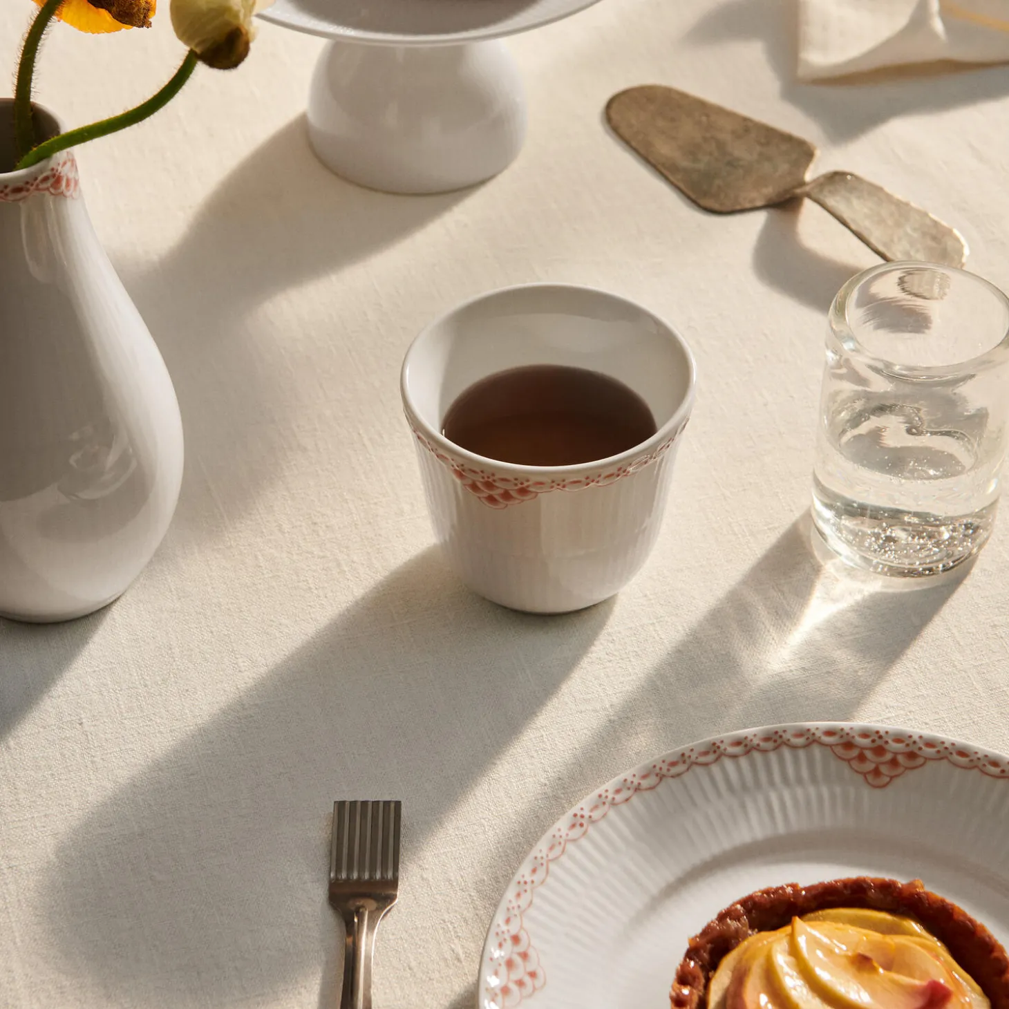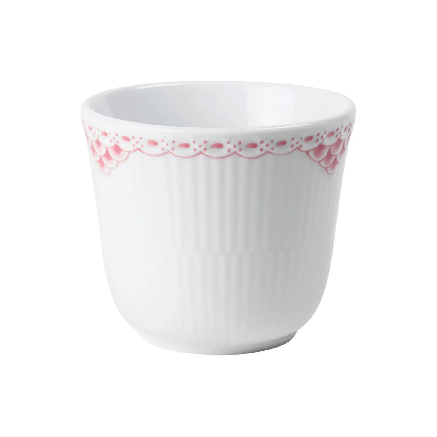 Termokoppen er en Royal Copenhagen klassiker. Denne Koral Riflet Blonde version tilføjer et strejf af elegant minimalisme til koppens organiske form. Blondekanten er håndmalet i den bløde koralnuance, mens resten af porcelænets, riflede overflade forbliver hbid. En moderne klassiker der er designet til at vare ved.