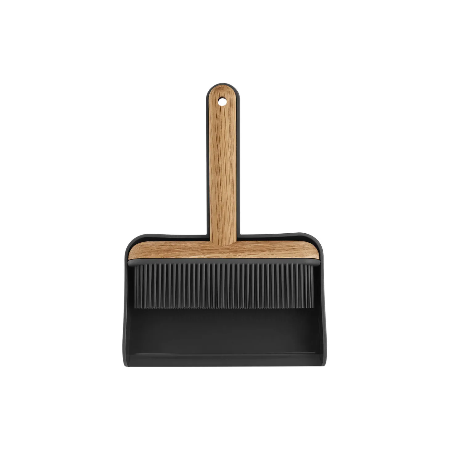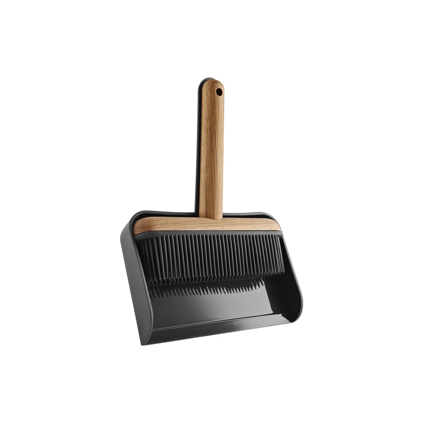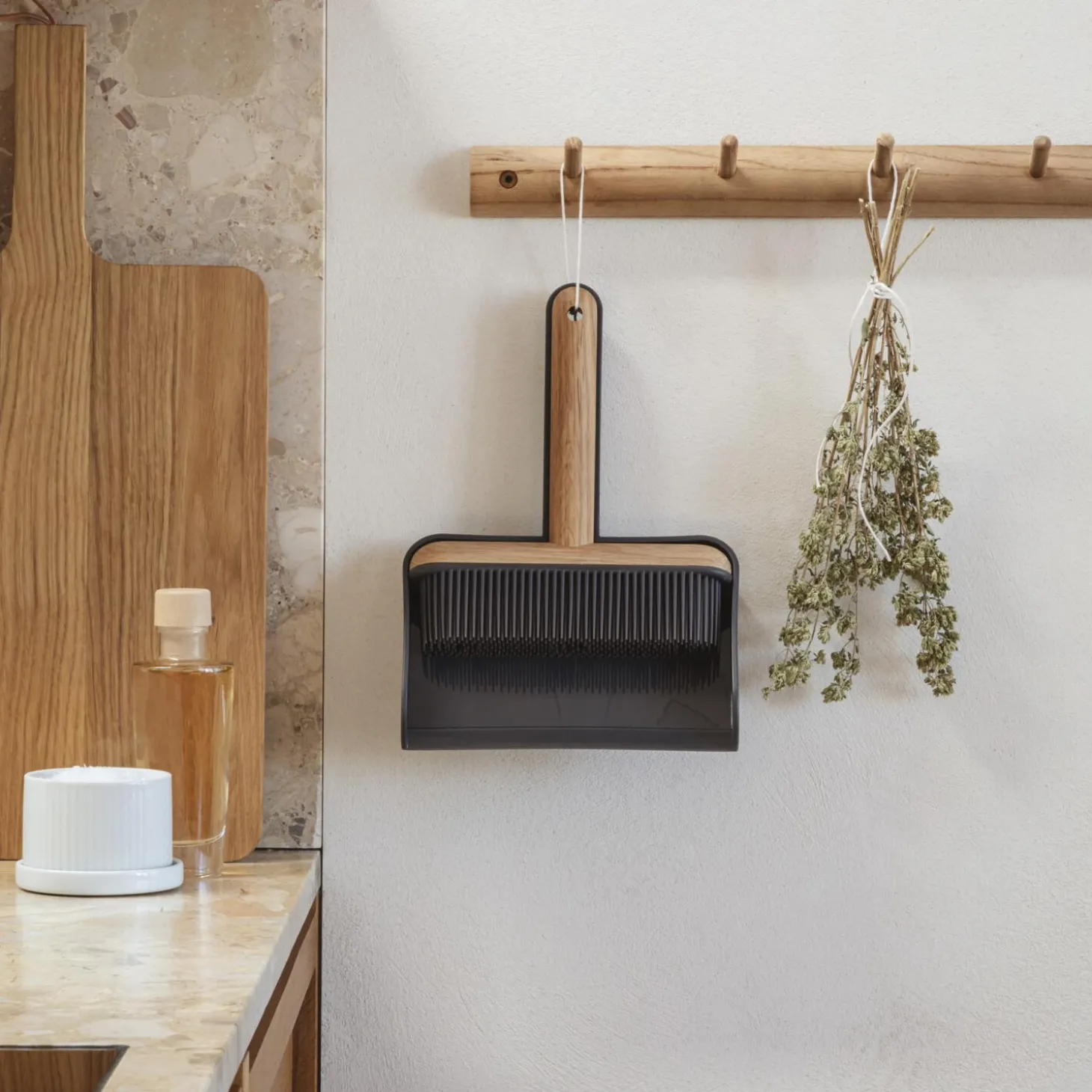 Et uundværligt makkerpar til den lette rengøring: Kost og fejebakke i et minimalistisk design. Kosten er udstyret med silikonehår, der kan feje både vådt og tørt op, og fejebakken er designet med en skarp kant, så støv og snavs let fejes op i bakken. Silikonehårene kan skylles i varmt vand, så kosten altid kan holdes ren og hygiejnisk. Når kosten ikke er i brug, sættes den ind i fejebakken, og sættet fylder dermed minimalt.