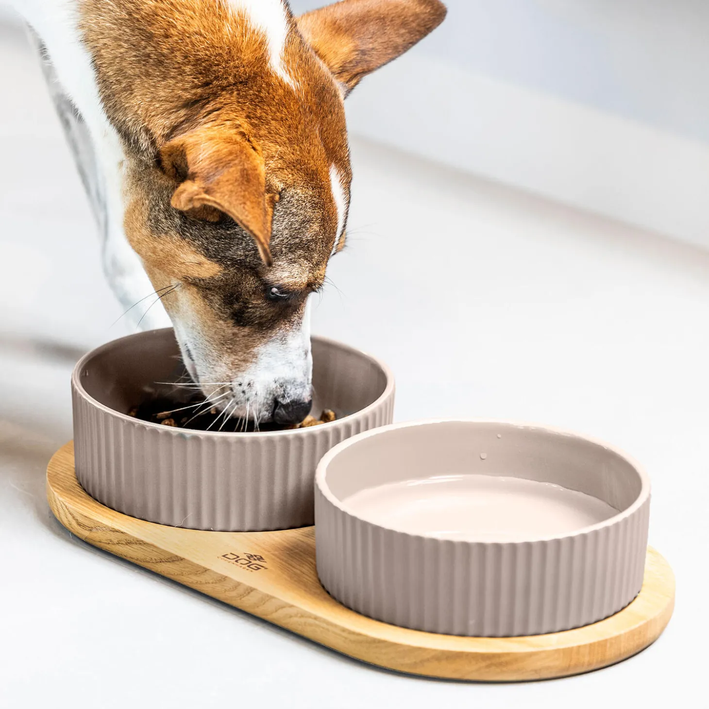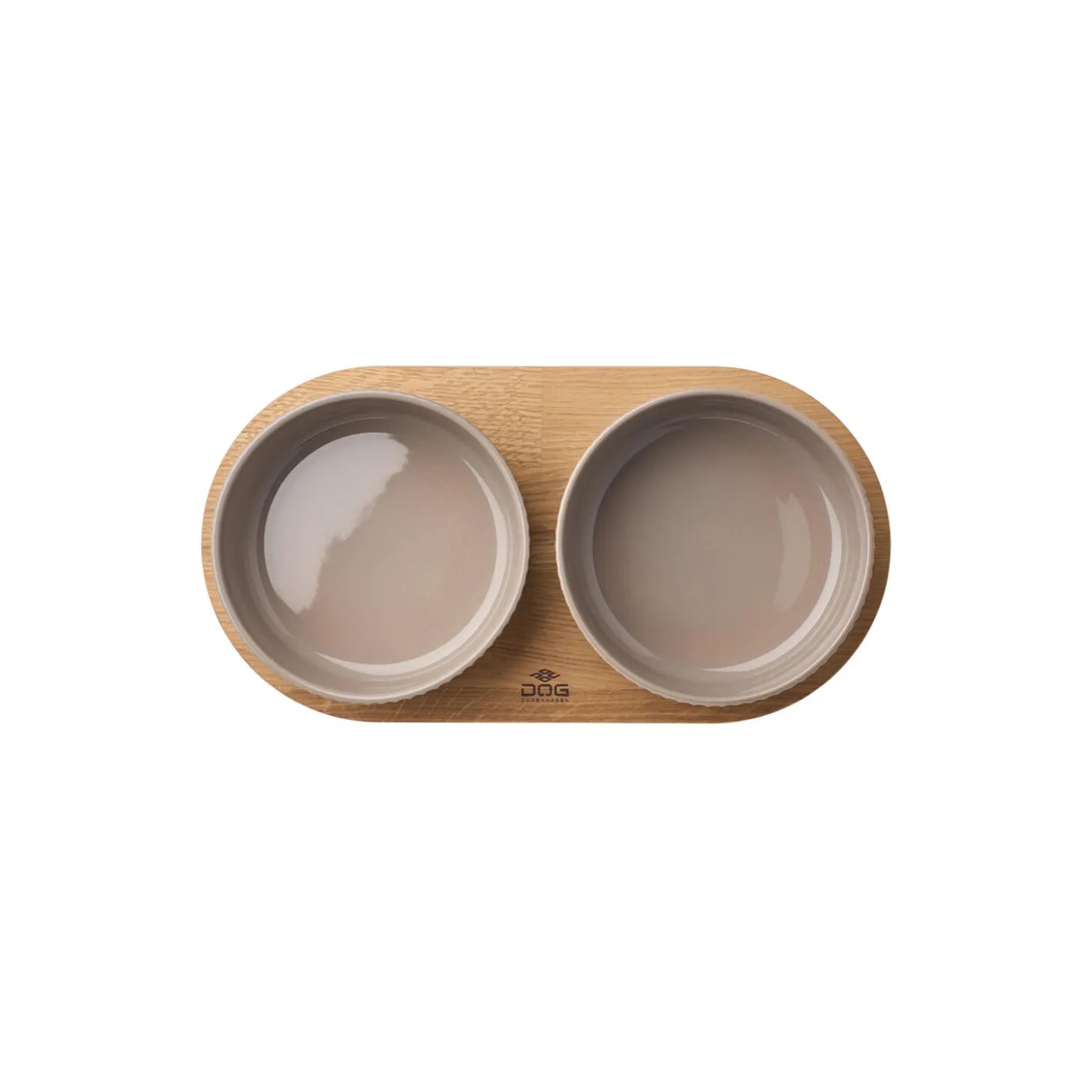 Kronborg foderbaren fra DOG Copenhagen bringer med sin stilrene og klassiske formgivning et strejf af nordisk stil ind i dit hjem. Den massive egetræsbase er omhyggeligt designet med smukke afrundede kanter, præcist udskårne huller for at holde de to skåle sikkert på plads og med effektive skridsikre gummifødder. De to højkvalitets stentøjsskåle er designet med en elegant riflet og mat udvendig finish og blank indvendig finish. De er robuste og tåler opvaskemaskine.