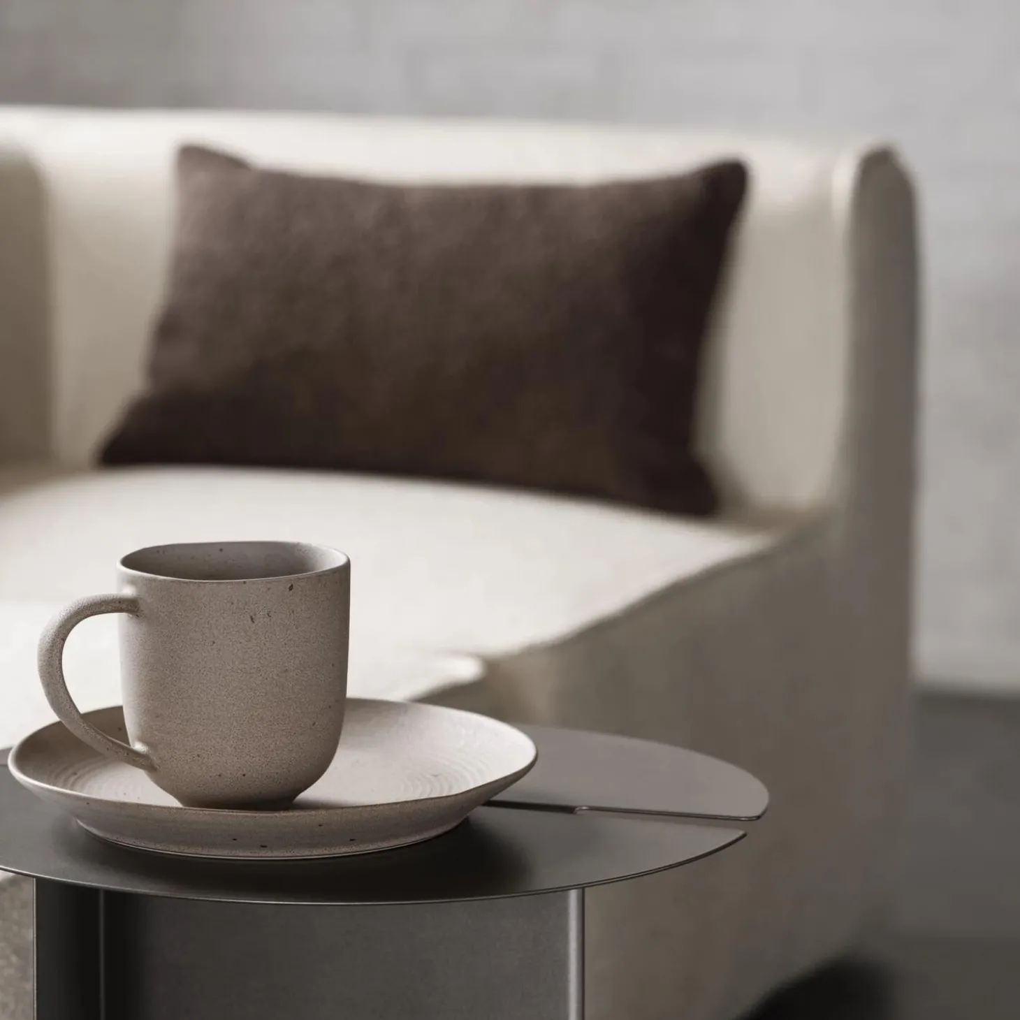 The new tabletop range created by the blomus design team has not only typical Japanese shapes that show the minimalist design language which fits so well with the blomus approach of designing everyday objects. It also has a fascinating -but very traditional Japanese- reactive glazing. This effect glazing comes out different with every firing, and reacts on the slightest variations of oxygen in the kiln atmosphere. Nevertheless these stoneware dishes are dishwasher and microwave safe. This semi-matt finished glaze may have dots and imperfections, may scratch, as it is a very soft surface- nevertheless it is no damage, it is just part of this sophisticated approach. This is why it is called Kumi, which takes its name from the Japanese word for eternal beauty.