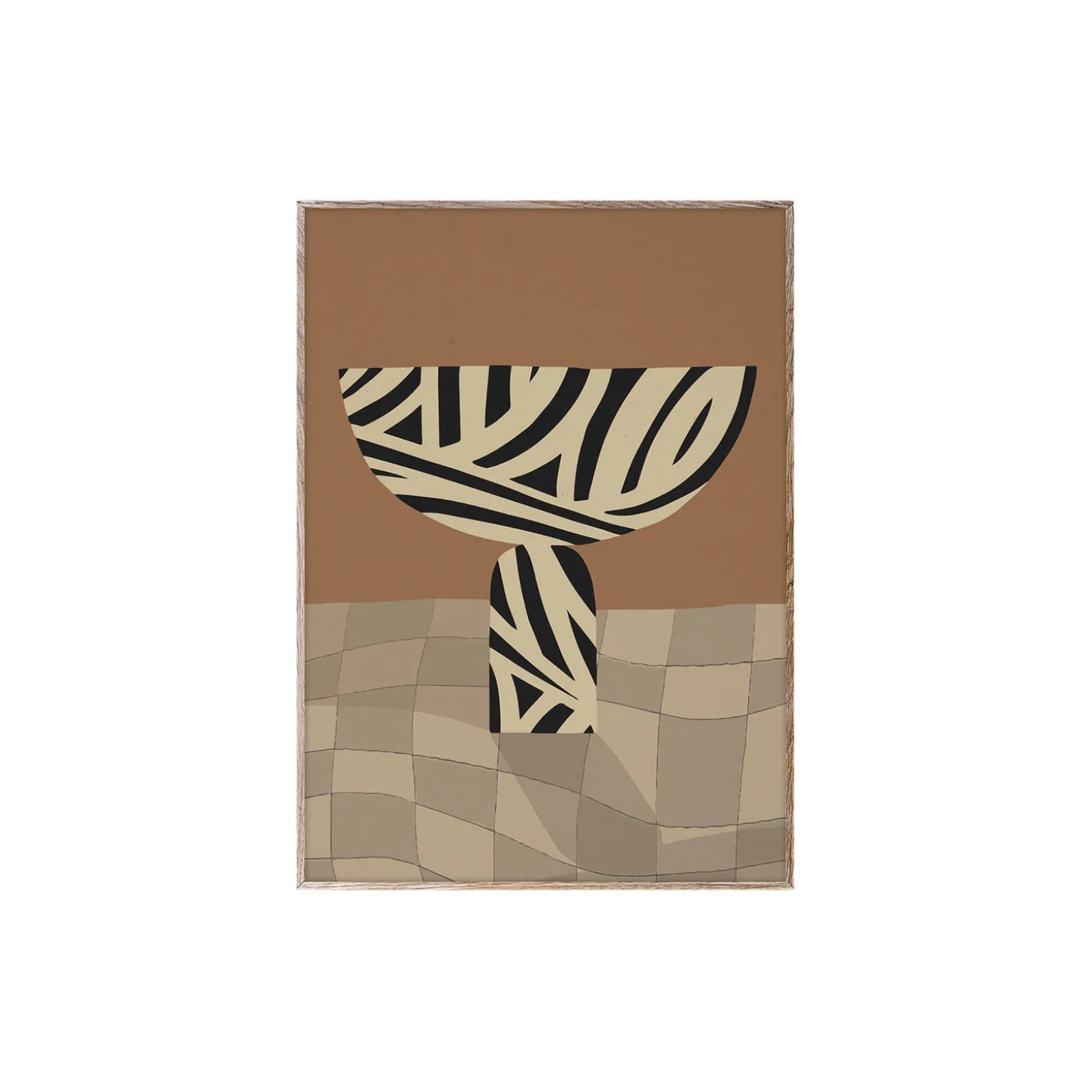 Kyrr Vase II by Icelandic designer and artist Kristín Sigurðardóttir is a combination of simple forms and playful patterns. A vase is created by two rounded shapes stacked on top of one another. Mixing digital techniques with traditional methods of painting, the composition provides a new take on still life compositions. The vases playful black and white pattern pops against a neutral backdrop of both solid and patterned surfaces. Frame not included.