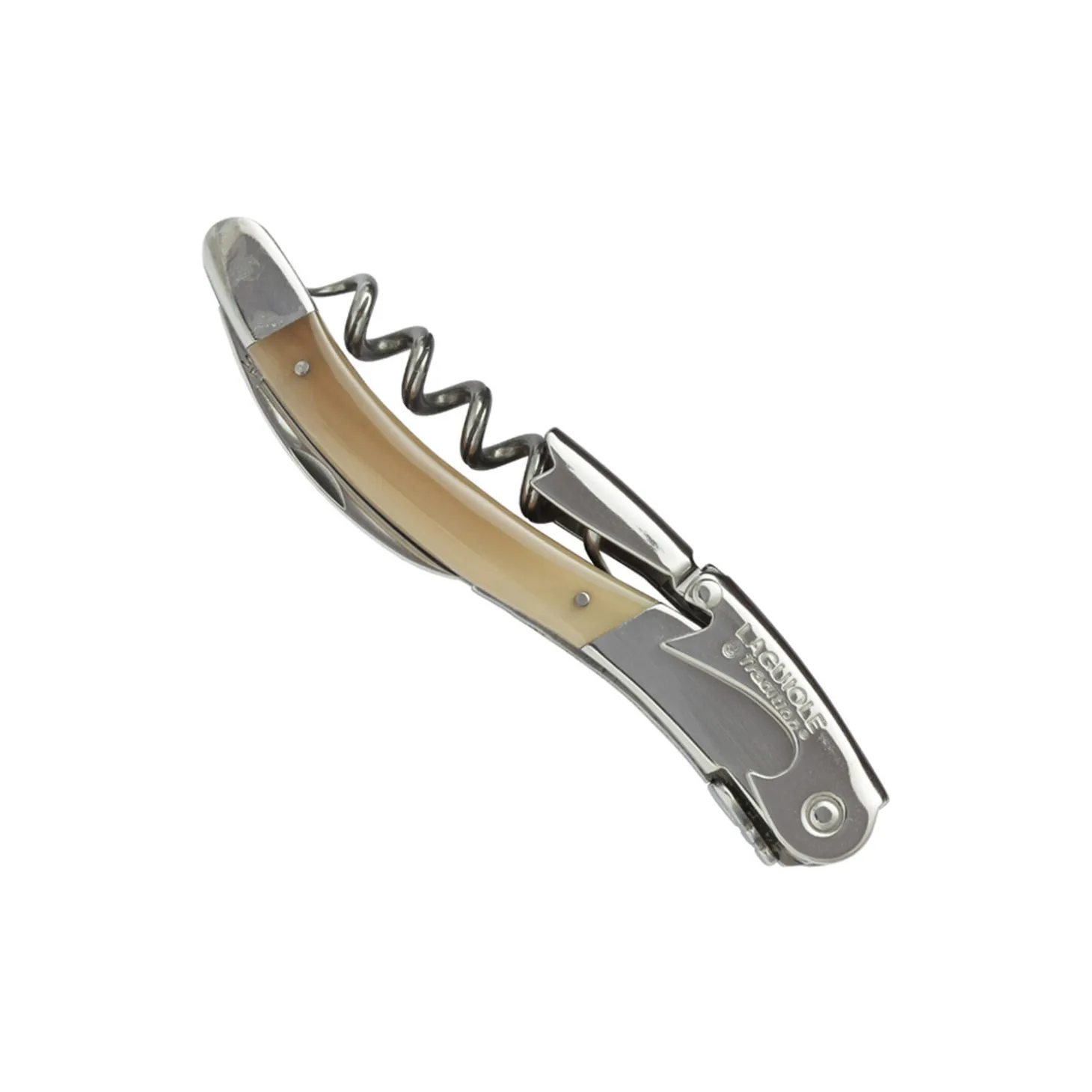 Tradition proptrækker i stål og skaft i brunt horn fra Laguiole Tradition. Farve: sort.