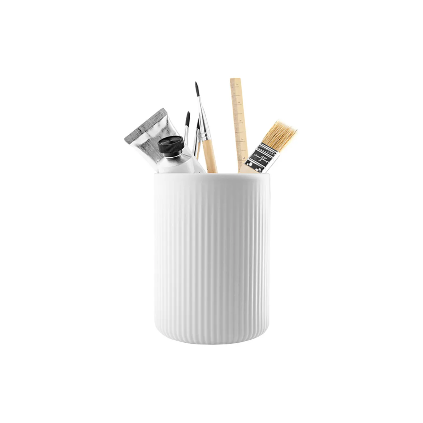 Få stilfuld orden i køkkenet med Legio Nova redskabskrukke. Det lette riflede velkendte udtryk fra Legio Nova-serien pryder krukken og sikrer, at man elegant kan samle køkkenredskaberne og stille dem frem på køkkenbordet. Med redskabskrukken kan man let sikre et ryddeligt køkkenbord, og det er derfor slut med rod på borÂdet. Redskabskrukken er velegnet til opbevaring af eksempelvis køkkenredskaber eller blyanter, pensler og tegnesager.
