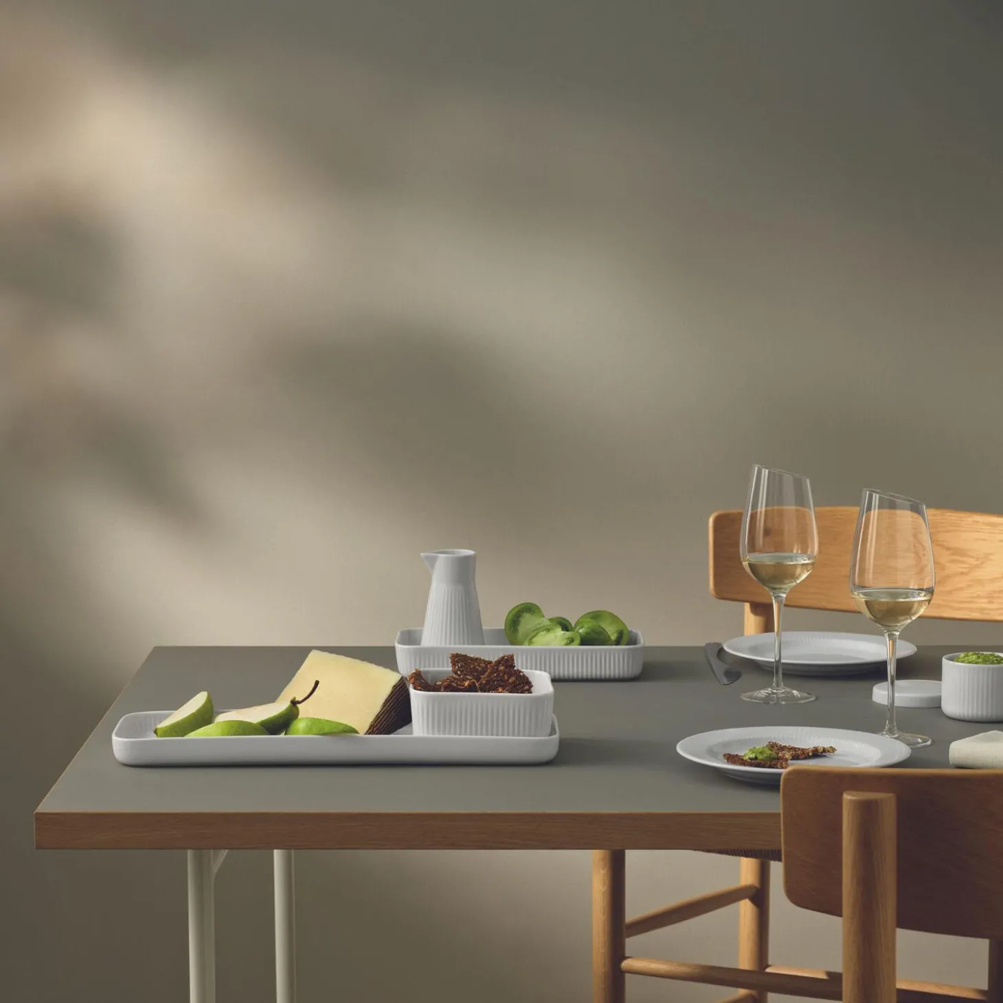 Når der skal anrettes og dækkes op, er Legio Nova serveringsfad perfekt, da det passer til både små snacks som nordisk tapas eller til større måltider. Det elegante serveringsfad er også praktisk og yderst anvendelige til andre formål såsom dekoration med lys eller til opbevaring udenfor køkkenet. Fadet kan kombineres med og stables inden i det rektangulære Legio Nova serveringsfad 37×13 cm.
