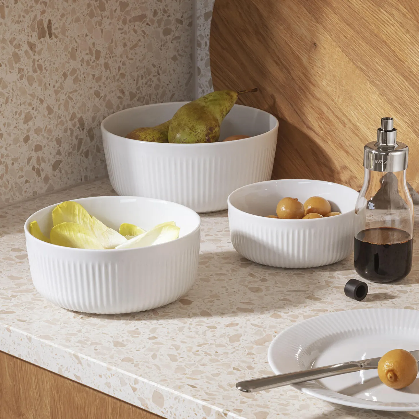 Legio Nova skålen danner elegant ramme om enhver anretning. Skålen pynter og er praktisk på det store middagsbord såvel som på køkkenbordet i dagligdagen. Skålen har en god rummelig størrelse, som giver den flere anvendelsesmuligheder. Brug den f.eks. til salat, pasta, grøntsager eller frugtskål. Til skålen passer Eva Trio grydelåg, som kan tilkøbes. Nem at rengøre, tåler ovn, fryser, mikroovn og maskinopvask.
