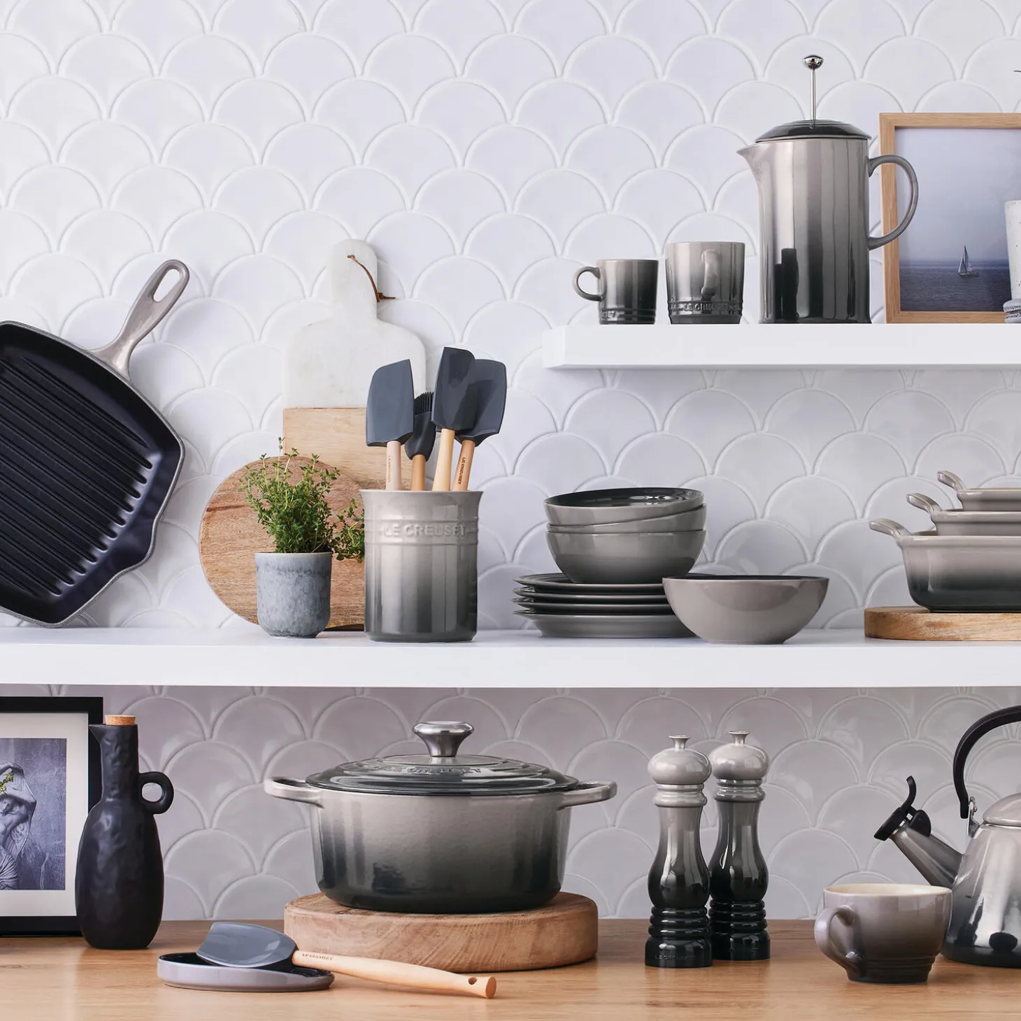 Hvorfor gemme dine Le Creuset-redskaber væk i en skuffe, når du kan vise dem frem i en smuk redskabskrukke? Dette produkt er perfekt til opbevaring af piskeris, grydeskeer, dejskrabere og meget andet, samtidigt med at den er et smukt, farverigt indslag på dit køkkenbord. Føler du dig eventyrlysten? Slip din indre stylist løs og pynt hjemmet med friske krydderurter.