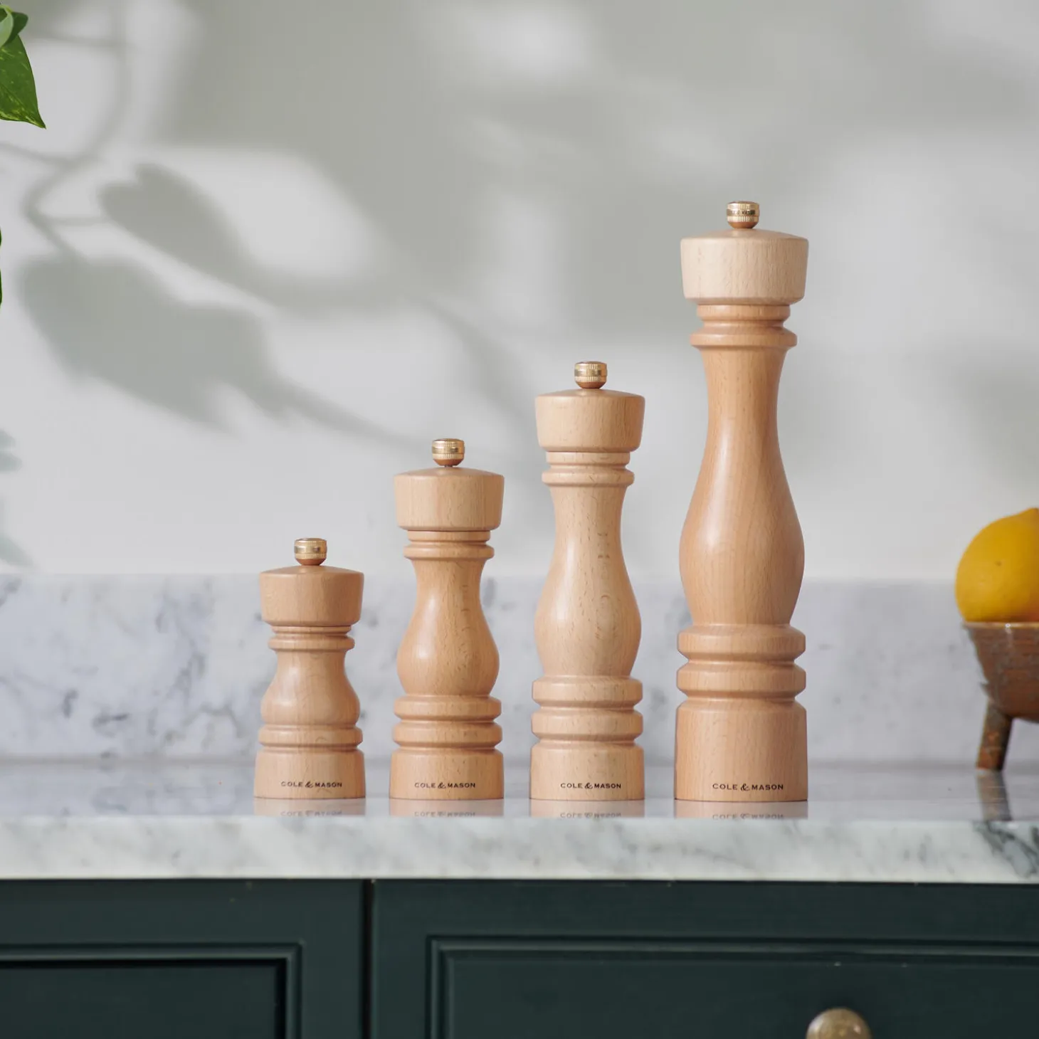 London Mill fra Cole & Mason ærer både design arv, og ser mod fremtiden med en klassisk, men moderne æstetik, og vil være en elegant tilføjelse til både traditionelle og moderne køkkener. Juster let malingen fra fin til groft ved at dreje knappen på toppen af kværnen. Fremstillet af højkvalitets bøgetræ med metaldetaljer og fås i 5 forskellige farver. Kværnene kommer ufyldte og sættene præsenteres i premium gaveæsker. Rengør med en mikrofiberklud for at holde det så godt som muligt. Alle pebermøller er udstyret med Cole og Mason Precision carbonstål mekanismer og er dækket af vores livstidsgaranti. Saltmøllerne er alle udstyret med vores anti-rust keramiske mekanisme af høj kvalitet.
