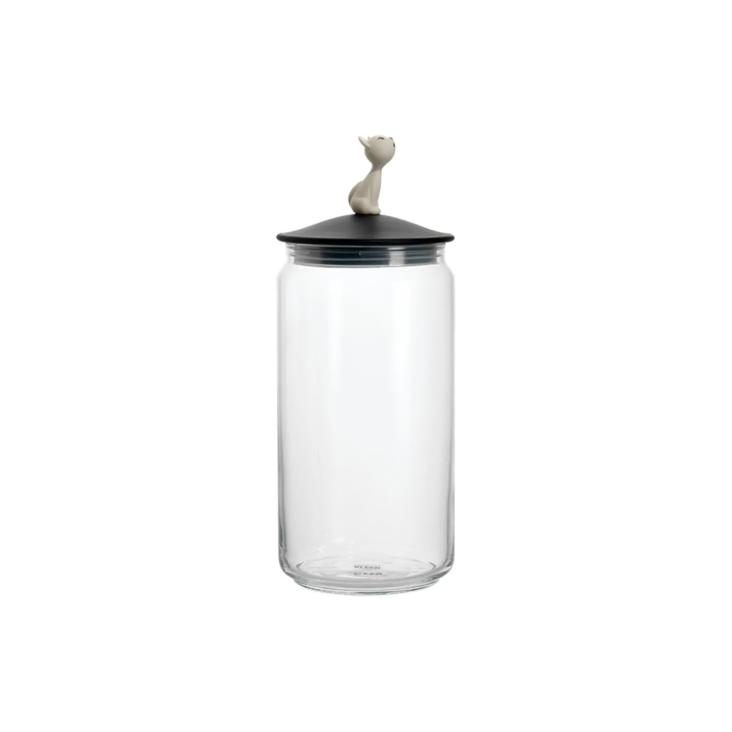 LuláJar opbevaringsglas til kattemad i glas og termoplastisk harpiks fra Alessi. Farve: sort. Mål: H: 27 x Ø 10,5 cm. Indeholder: 150 cl. Design: Miriam Mirri.
