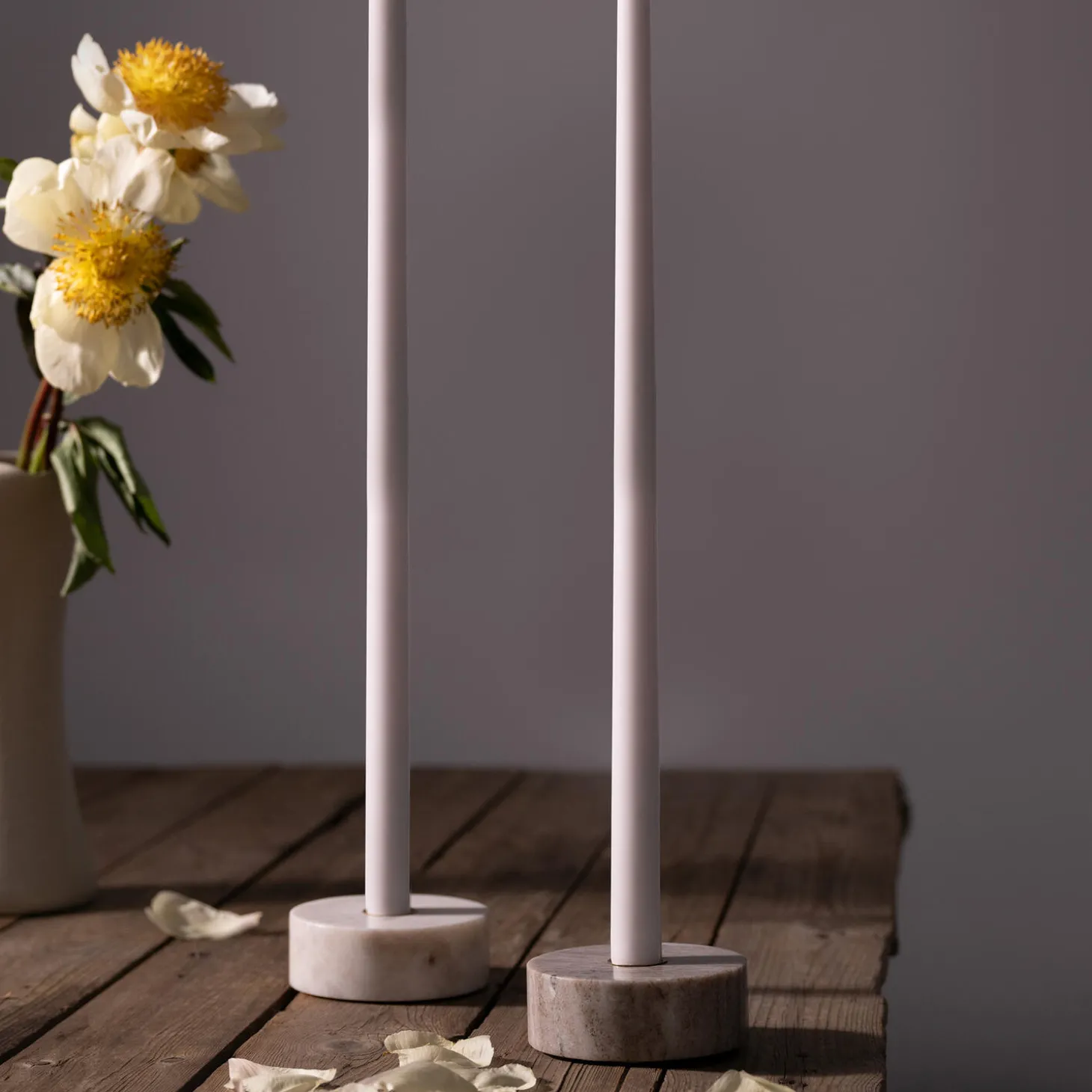 Løft dine stearinlys til nye højder med vores Marble Candleholder. Fremstillet af luksuriøs, ægte marmor, giver denne imponerende holder en solid og stilfuld base til dine bloklys. Perfekt til høje stearinlys, tilføjer den en følelse af elegance og tyngde til din borddækning. Tip: Disse marmorstager er også et smukt match til Grooved Taper Collection.*Bemærk: Dette produkt er fremstillet af organisk materiale, hvilket kan medføre variationer i udseendet.