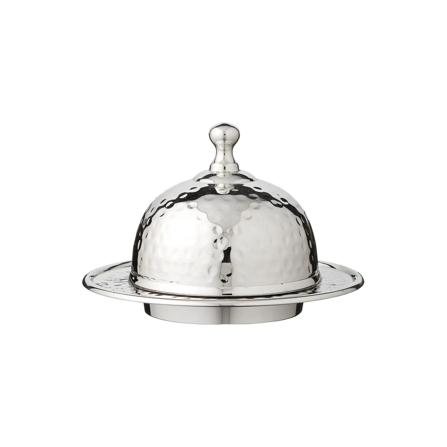 Merle smørskål i messing og glas fra Lene Bjerre. Farve: sølv. H: 10,5 x L: 14 x B: 14 x Ø: 14 cm.