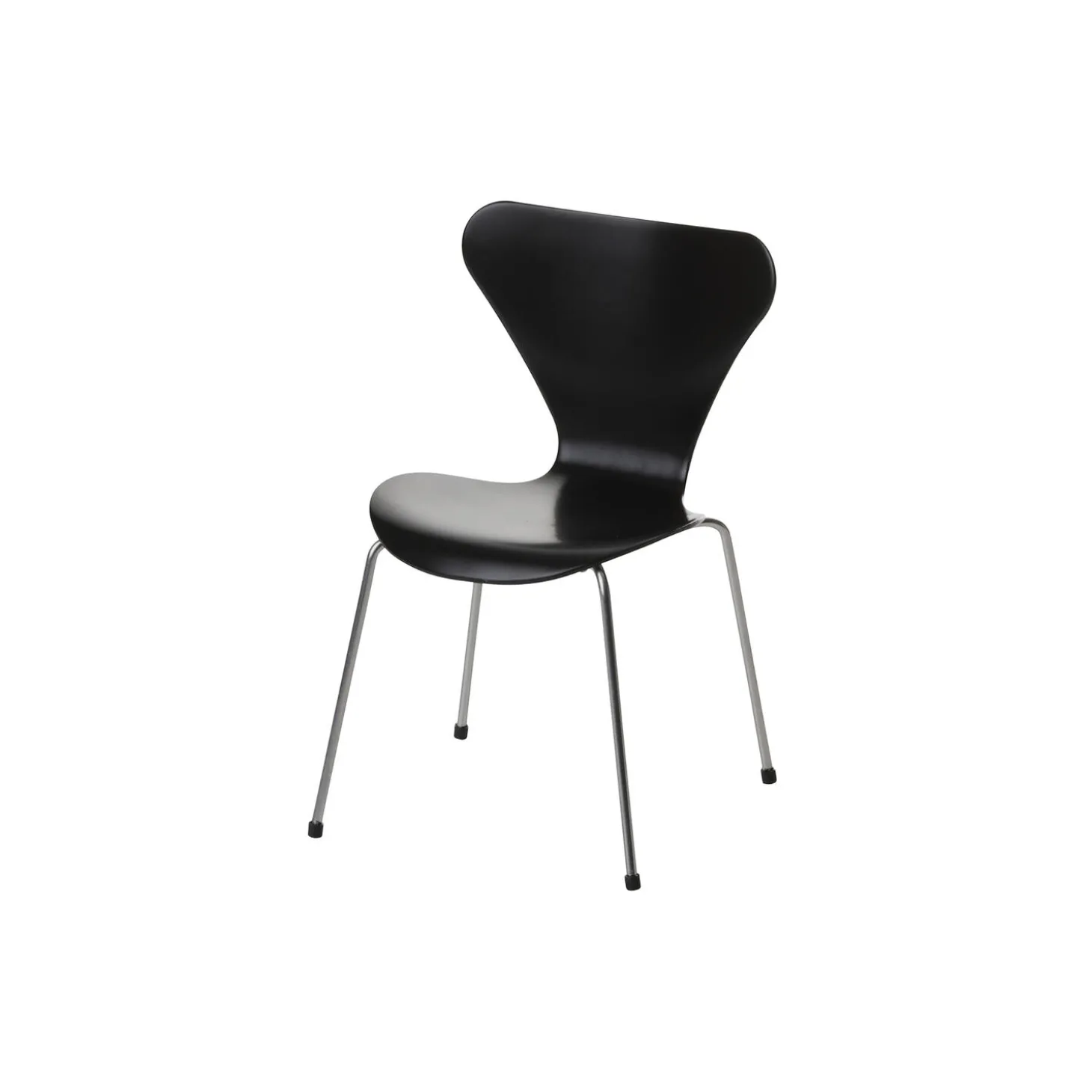 Miniature Serie 7™ stol i lakeret finer og stel i forkromet stål fra Fritz Hansen. Farve: sort. Mål: H: 13 x L: 8,5 cm. Design: Arne Jacobsen.