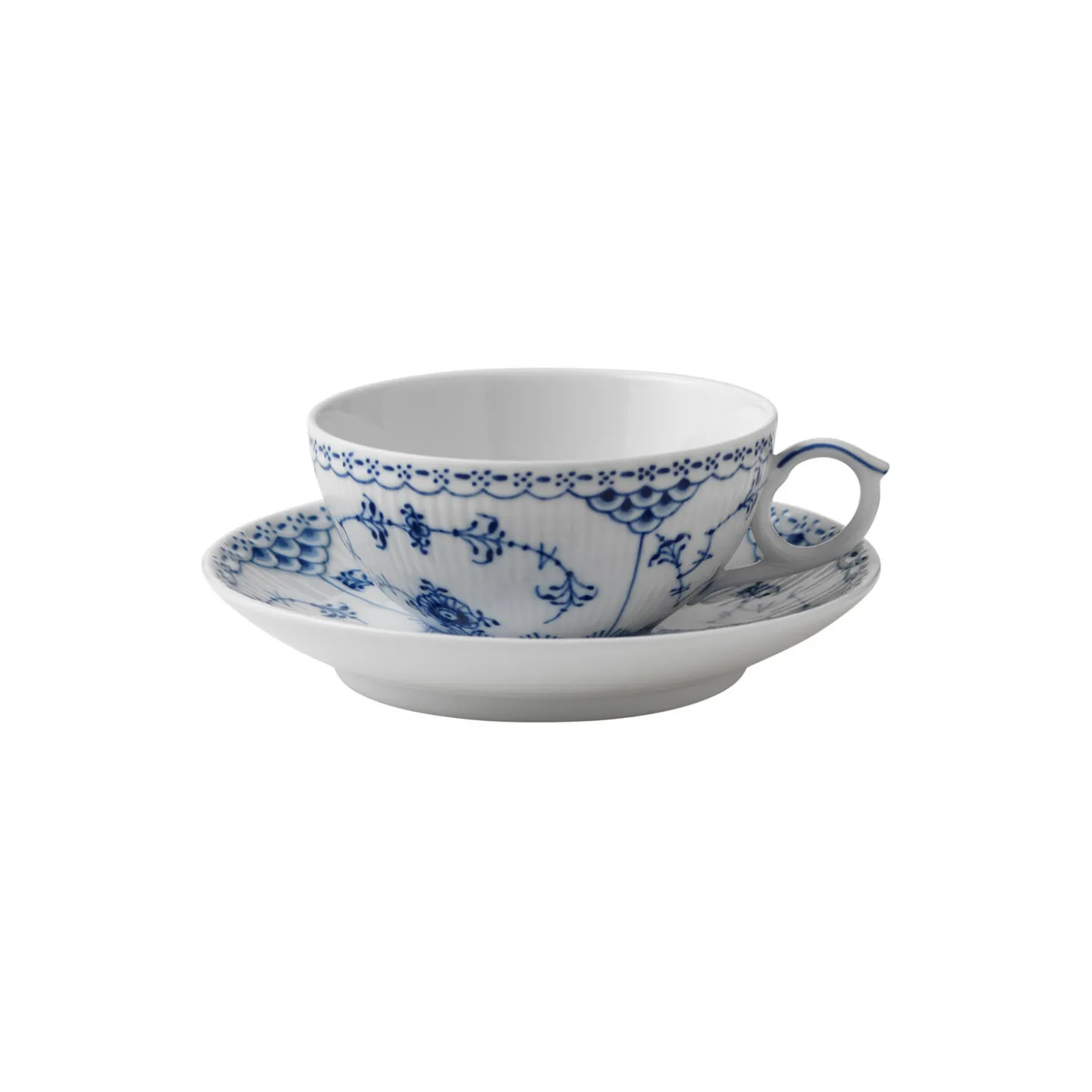 Musselmalet Halvblonde kop med underkop i porcelæn fra Royal Copenhagen. Denne Musselmalet Halvblonde Kop med Underkop på 20 cl er et klassisk valg til tetid. Den håndmalede tekop er skabt i en form, der lader teen afkøle til en passende temperatur, så hvert et øjeblik kan nydes til fulde.