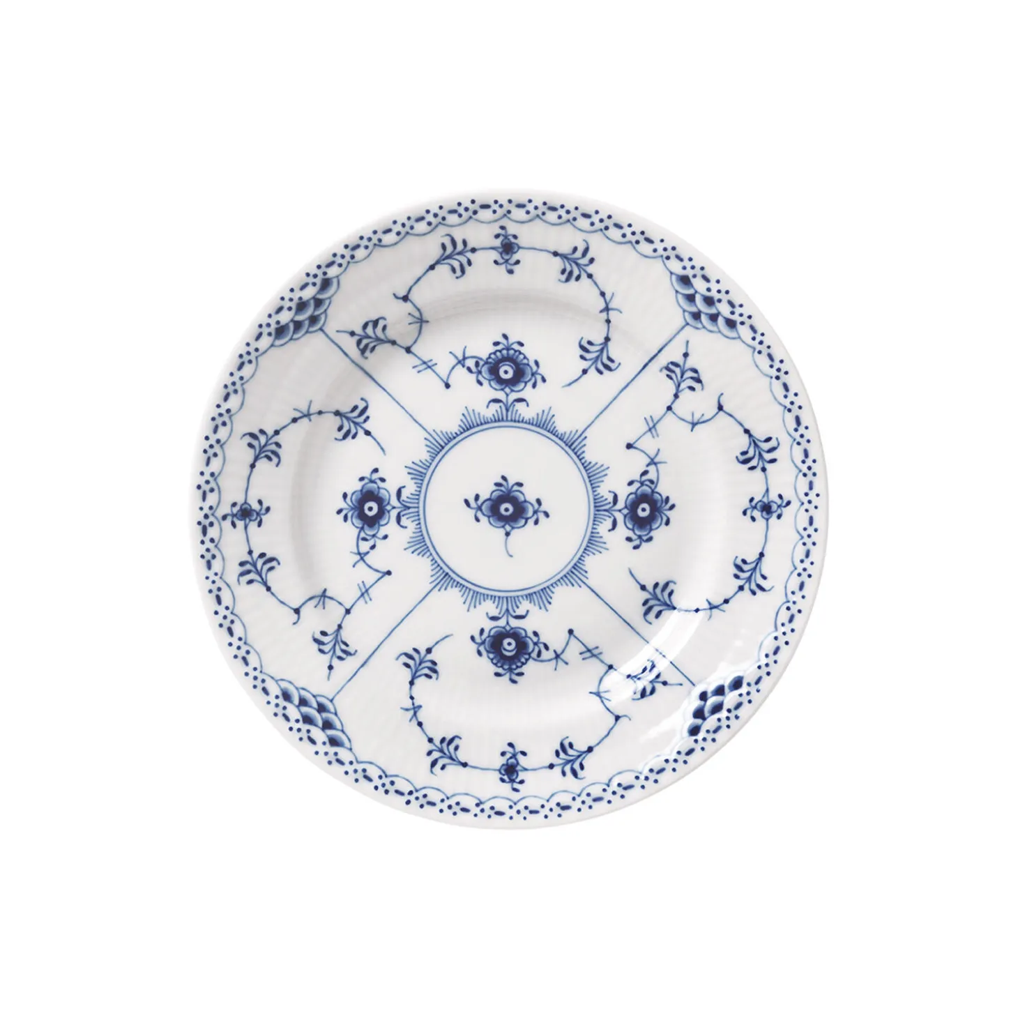 Musselmalet Halvblonde tallerken Ø 17 cm i porcelæn fra Royal Copenhagen. Der er noget ekstremt spændende ved Musselmalet Halvblonde-mønster. Den har så mange detaljer, omhyggeligt håndmalet, og det er umuligt ikke at nyde det. Her er mønstret på en 17 cm tallerken, en af de mindre størrelser, ideel til dessert eller en hurtig morgenmad.