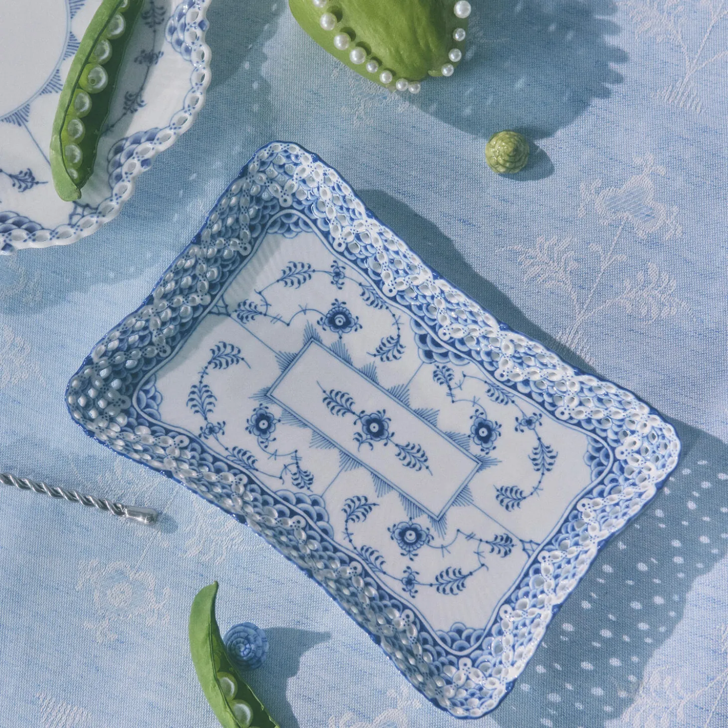 Musselmalet Helblond Rektangulært fad fra Royal Copenhagen.