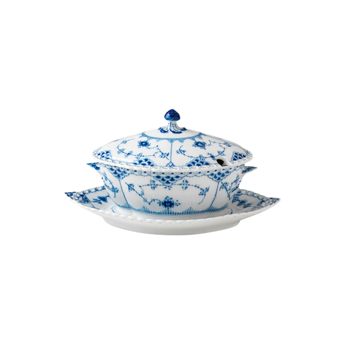 Musselmalet Helblonde sauceskål på fod fra Royal Copenhagen.