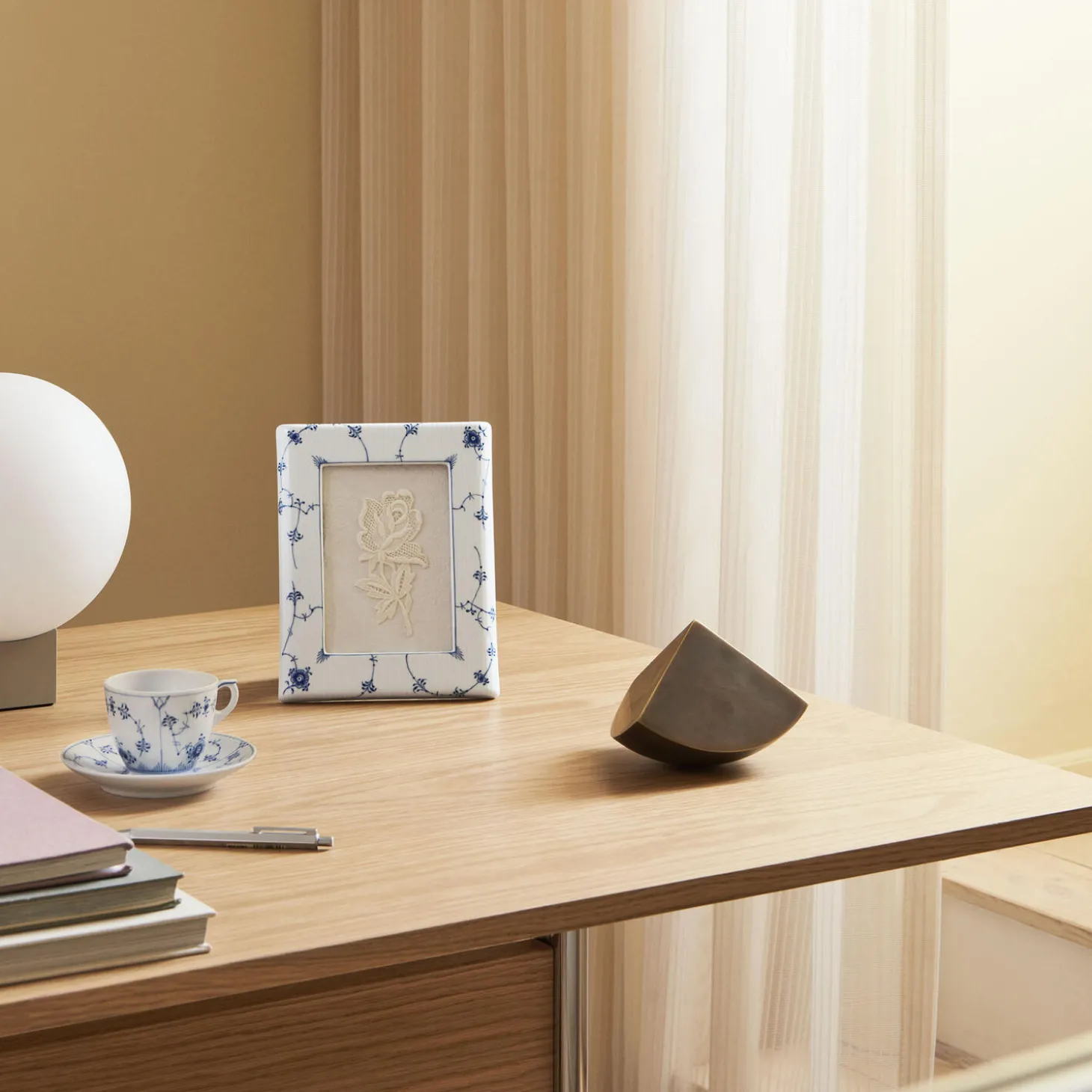 Musselmalet Riflet billedrammen giver dine minder et strejf af håndmalet elegance. Det klassiske, musselmalede mønster fra 1775 snor sig omkring rammens front og sider, og skaber en perfekt ramme for for dine fotografier.