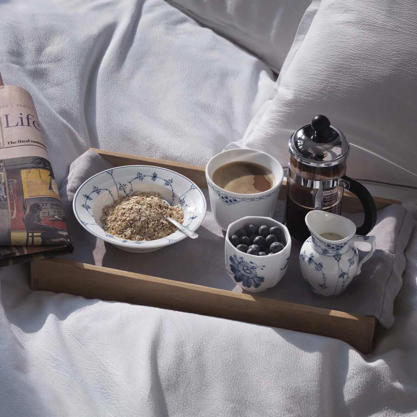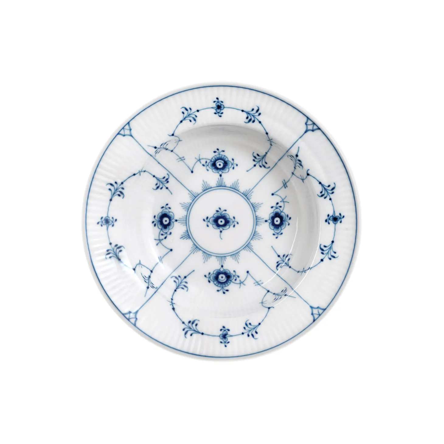Musselmalet dyb tallerken i porcelæn fra Royal Copenhagen. Denne dybe Musselmalet Riflet tallerken på 17 cm er indbegrebet af klassisk skønhed, lige fra form til mønster, og kan bruges til de fleste anretninger. Form og mønster mødes i smuk harmoni på denne klassiske, dybe Musselmalet Riflet tallerken på 17 cm. Det alsidige design gør den dybe tallerken ideel til alt fra morgenyoghurten til aftensmaden.