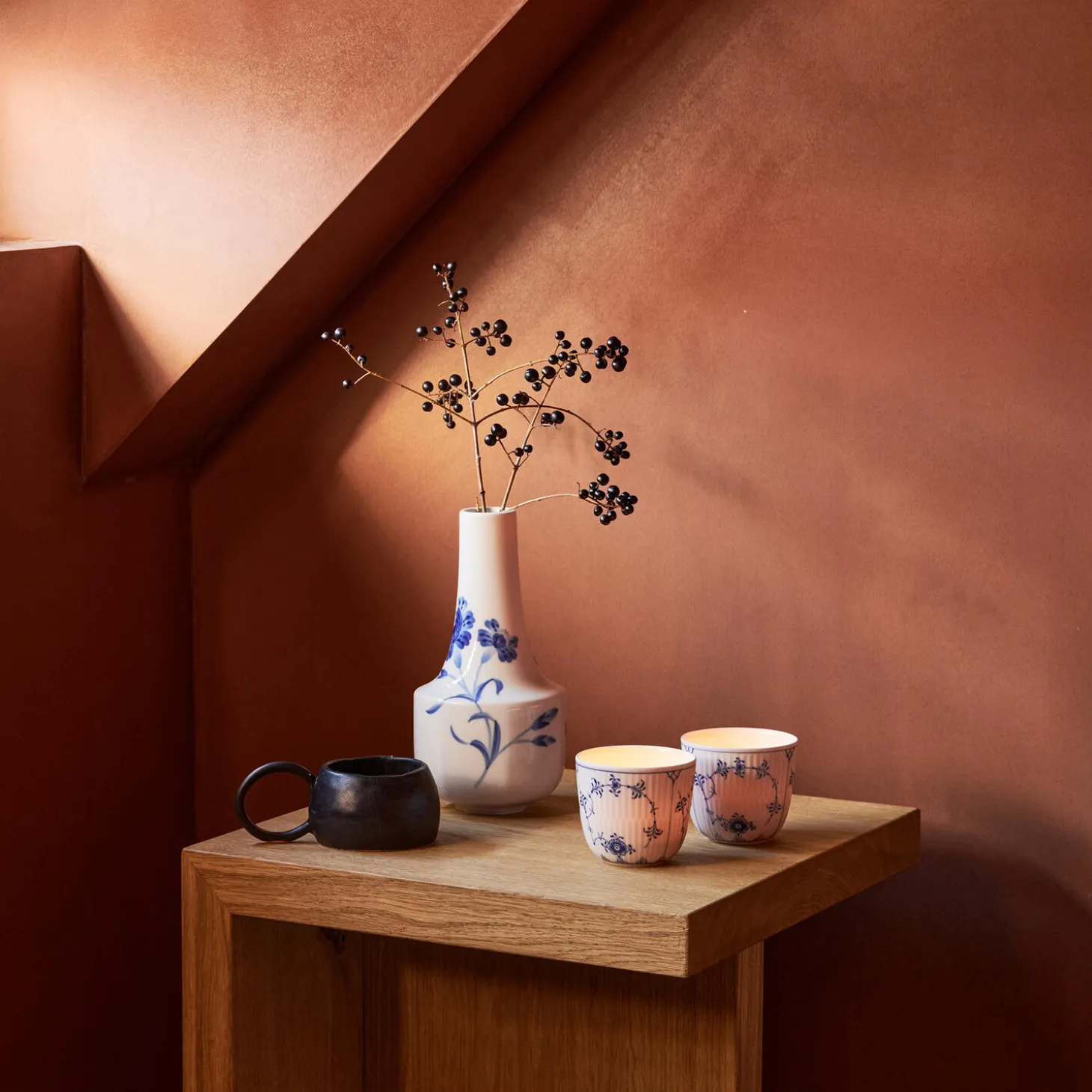 Musselmalet Riflet fyrfadsstager i porcelæn fra Royal Copenhagen. Intet hjem uden stearinlys – i hvert fald ifølge den uofficielle guidebog om skandinavisk livsstil. Musselmalet almindelig fyrfadsstager er designet til at holde fyrfadslys, perfekt til at skabe den rigtige stemning og hygge.