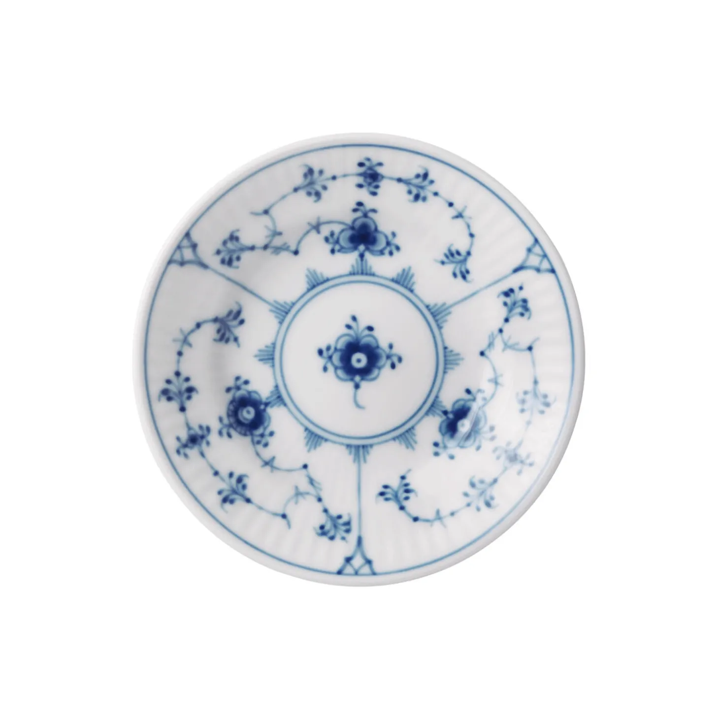 Musselmalet Riflet tallerken i porcelæn fra Royal Copenhagen. Den lille tallerken iMusselmalet Riflet er ideel til både kaffebordet og middagsbordet. Størrelsen på 12 cm gør tallerkenen oplagt til blandt andet små snacks, småkager og smør til brødet. Med sit evigt tidløse udtryk kan det musselmalede mønster med fordel sættes sammen med andre Royal Copenhagen stel for et personligt udtryk.