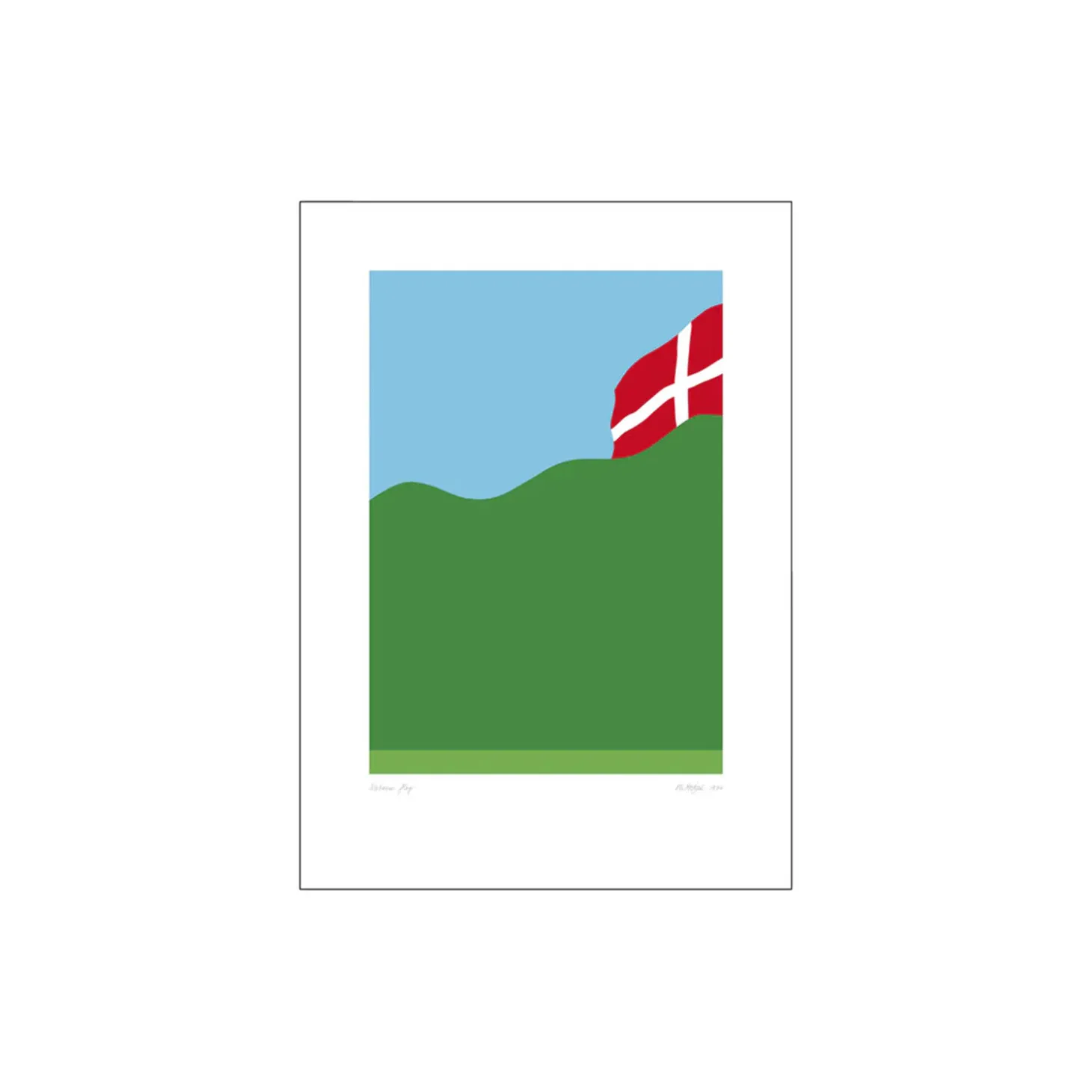 Kunstplakaten er en reproduktion af det originale kunstværk Naboens flag, som blev serigrafitrykt i 1974. Grundlovsflaget, der blafrer hos naboen.