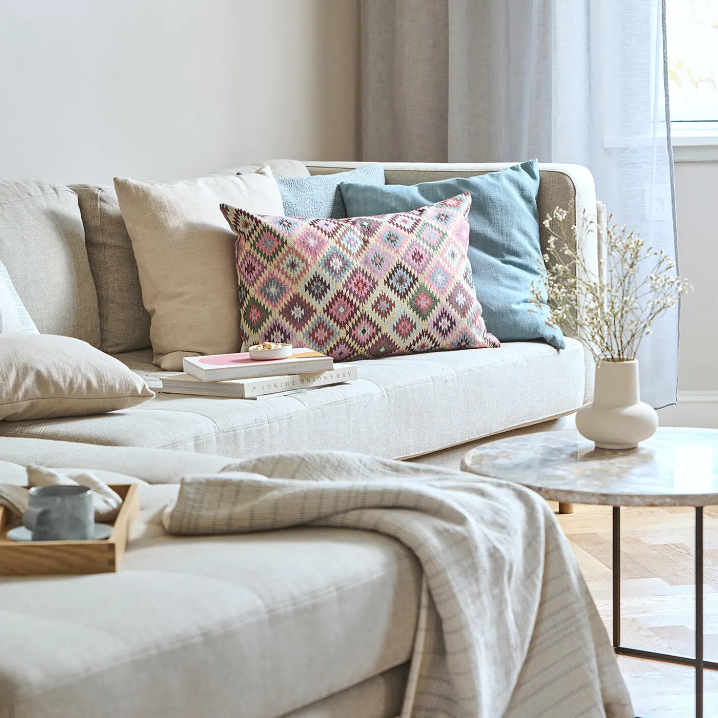 Smuk Nattiva pude i et traditionelt folklore-mønster, som leder tankerne mod varmere himmelstrøg. De iøjnefaldende nuancer skaber en elegant balance til det fine design og fungerer som et sofistikeret blikfang.