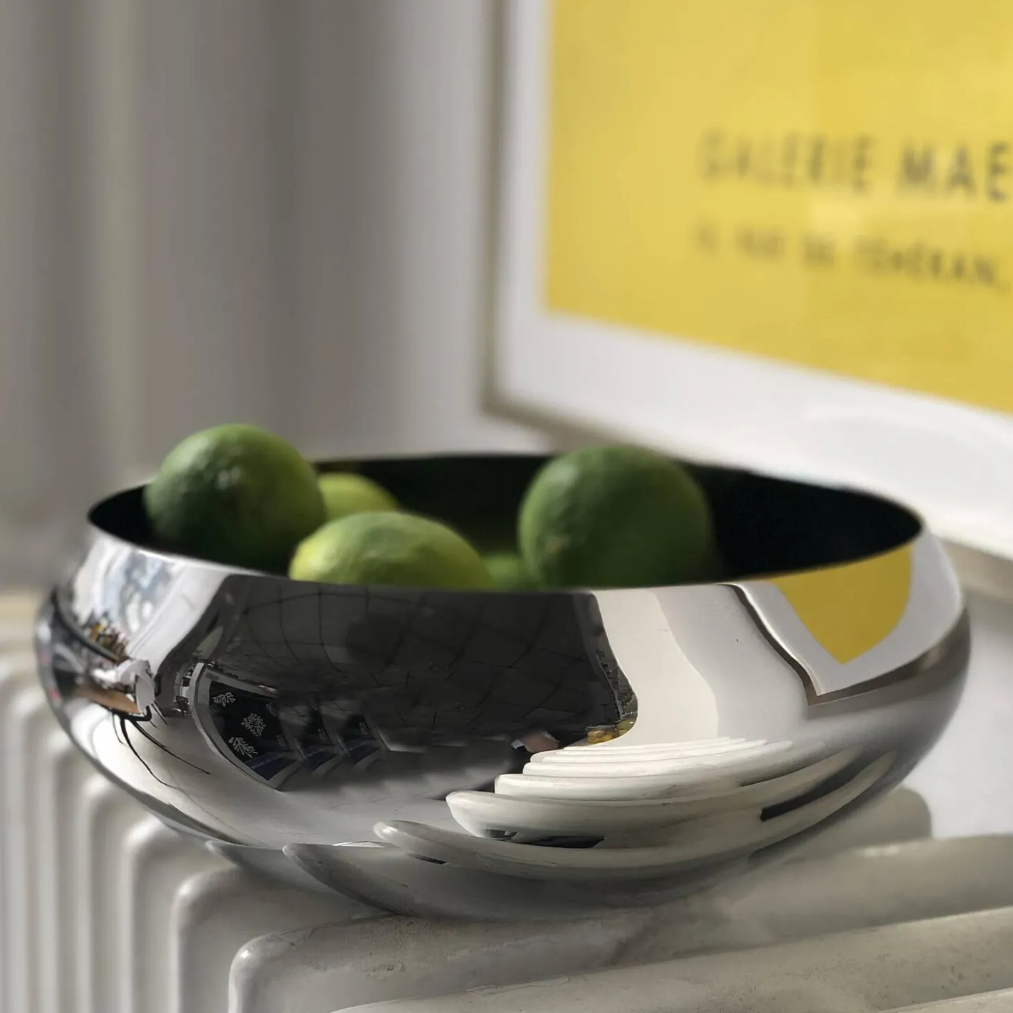 Den lille NEST skål i poleret stål indgår i KAY serien. Den måler 23 x 8,5 cm og er designet af Kay Bojesen. Poleret stål er det materiale, der lægger sig tættest op ad Kay Bojesens oprindelige sølvarbejde. Med sine spejlinger, fungerer den lille NEST skål både som et dekorativt element i stuen og som en smuk måde at præsentere maden på ved spisebordet.