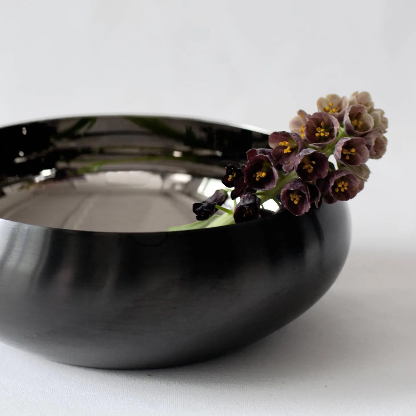 Den lille NEST skål i sort ædelstål indgår i KAY serien. Den måler 23 x 8,5 cm og er designet af Kay Bojesen. Den tynde, sorte overflade synliggør stålets struktur og giver skålen en silkeagtig glans.