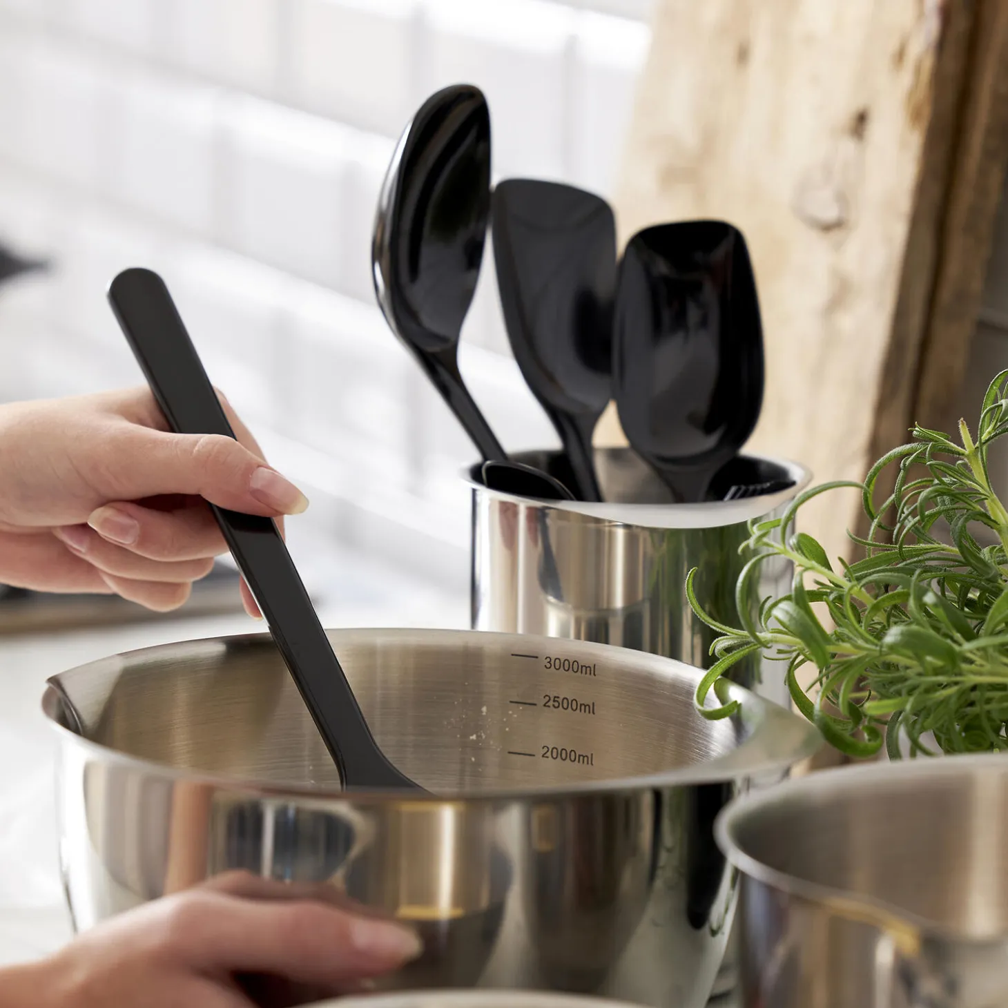 Den klassiske grydeske fra Rosti i mellemstørrelse med en længde på 25 cm er velegnet til både omrøring og servering. Skeens form følger fint rundingen i en skål, og samtidig er det nemt at røre helt ind til kanten i bunden af gryden.Rosti-sortimentet indeholder et væld af redskaber i forskellige størrelser, udformninger og farver. De fås i de samme farver som Margrethe-skålene, så det er altid muligt at matche skåle og redskaber eller alternativt lave sin egen spændende farvekombination. Classic-produkterne produceres i Durostima®, et langtidsholdbart plastmateriale med mange gode egenskaber, f.eks. er de mere brudsikre og tåler kortvarig varmepåvirkning op til 150 °C. Vi anbefaler, at redskabet altid fjernes fra panden eller gryden, når det ikke er i brug. Velegnet til opvaskemaskine. 5 års garanti.