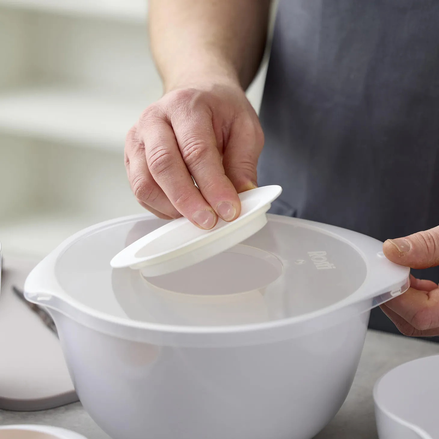 Margrethe-skålen er den klassiske røreskål med det gode greb, den praktiske hældetud og den skridsikre bundring. Den nye version af Margrethe-skålen er fremstillet af plastmaterialet Durostima®. Skålen er nu endnu stærkere og mere brudsikker, og med det nye materiale kan den også tåle mikroovn og fryser. Margrethe-skålen er velegnet til såvel tilberedning som servering, og tilkøbes der låg, er røreskålen omdannet til en praktisk opbevaringsskål. 5 års garanti.